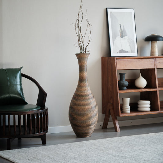 39-Inch Tall Standing Designer Floor Vase - Durable Artificial Rattan - Elegant Two-Tone Dark Brown Finish - Ideal Décor Accent for Living Room, Bedroom, Entryway - Stylish Home Décor Statement Piece