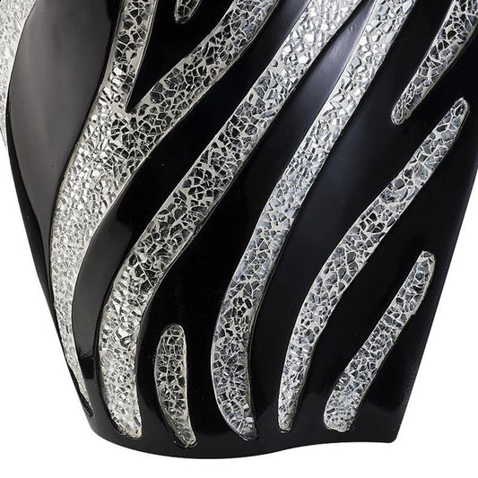 14' Tall Polyresin Decorative Vase, Black finish with Silver Zebra Pattern