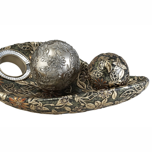 8.25 Long Inch Chrysanthemum Resin Fruit Bowl w/ Spheres