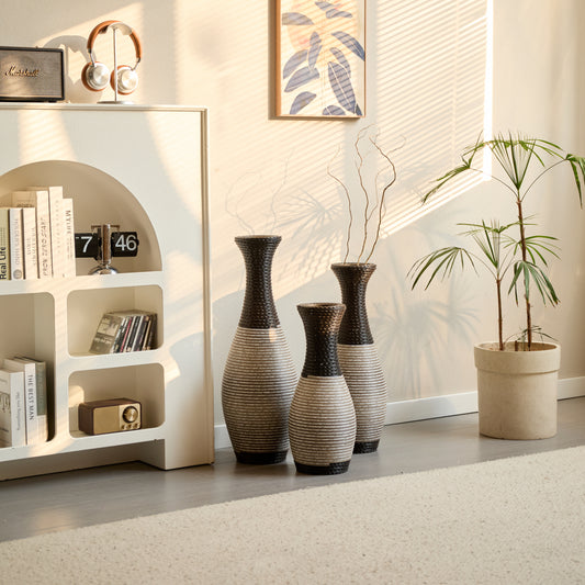 Desktop Vase, Brown Decorative Floor Vase, Classic and Neat Floor Vase, High Independent Flower Stand, Artificial Vine Vase, PVC Floor Vase, Home Decoration Flower Stand Set of 3 pieces