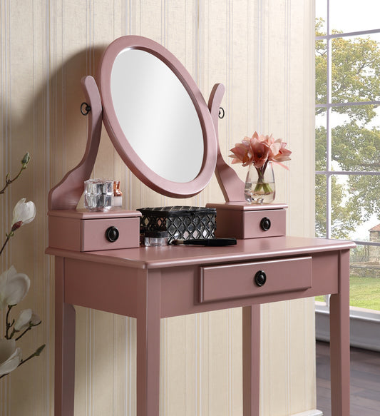Moniys Wood Moniya Makeup Vanity Table and Stool Set, Pink
