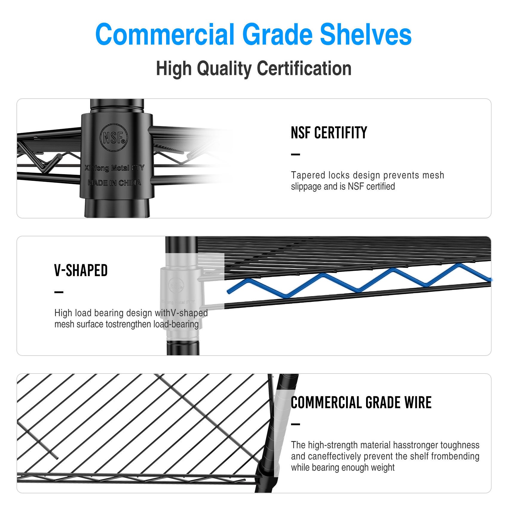[EXTREMELY DURABLE] - Wire shelving made of heavy steel, it has excellent rust resistance and oxidation resistance. Our wire shelf liner is crafted to provide unparalleled quality, longevity, function and beauty. Better quality thicker than the competition. The 6 tier corner shelf unit passed NSF certified, safe and reliable. Storage rack are perfect addition to home, office.