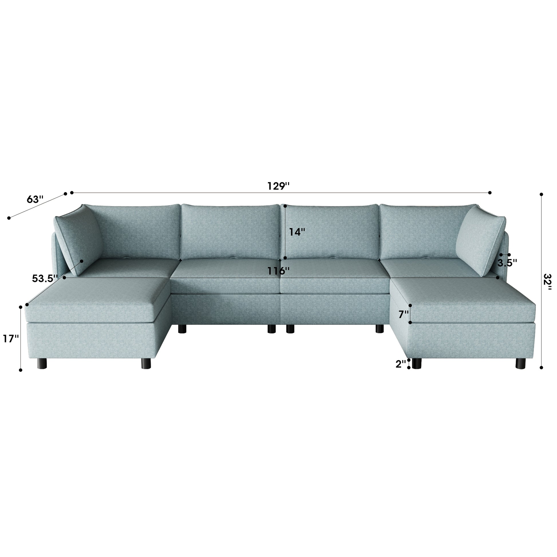 Modular Sectional Sofa, Convertible Sofa Seat With Storage, Sleeper Sectional Sofa Set, Fabric Flexible Modular Combinations for Living Room