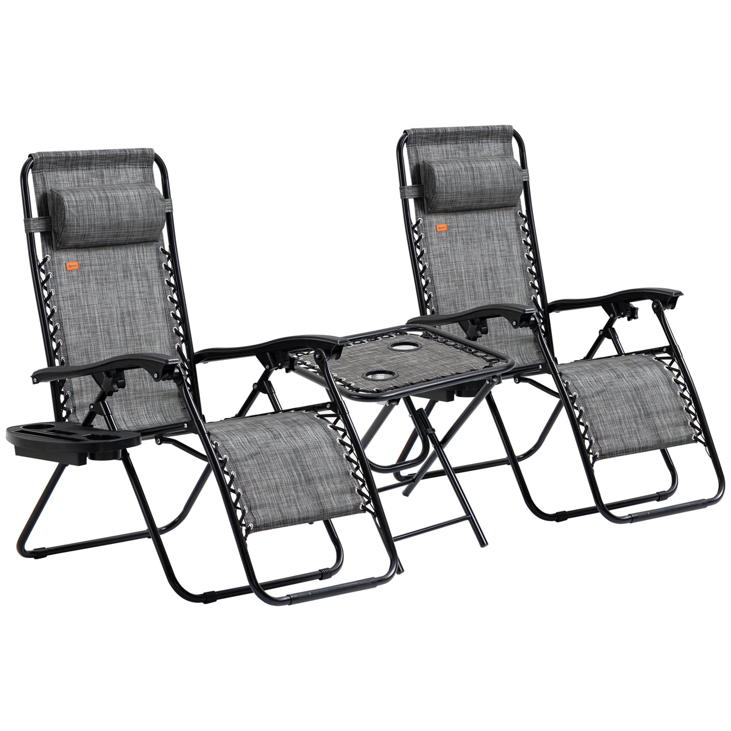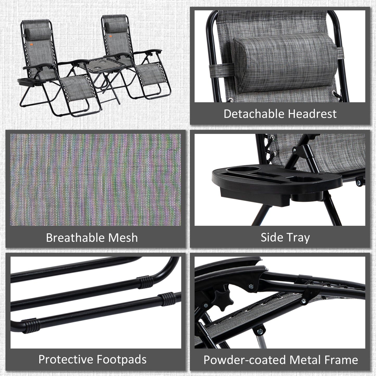Outsunny Zero Gravity Chair Set with Side Table, Folding Reclining Chair with Cupholders & Pillows, Adjustable Lounge Chair for Pool, Backyard, Lawn, Beach, Gray