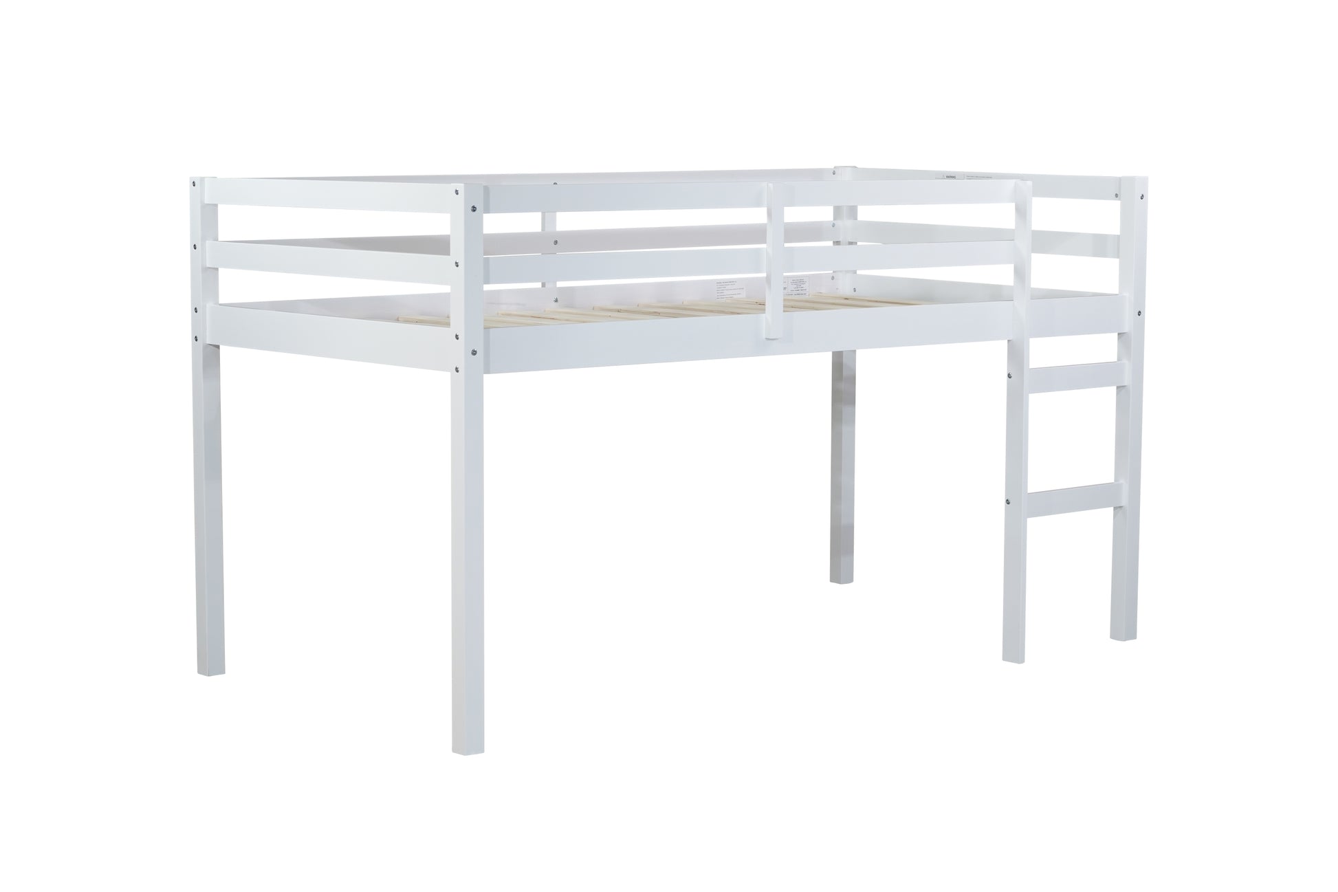 Solid Wooden, Rubber Wooden Twin Loft Bed with Ladder, Bed Platform of Strengthened Slats , White