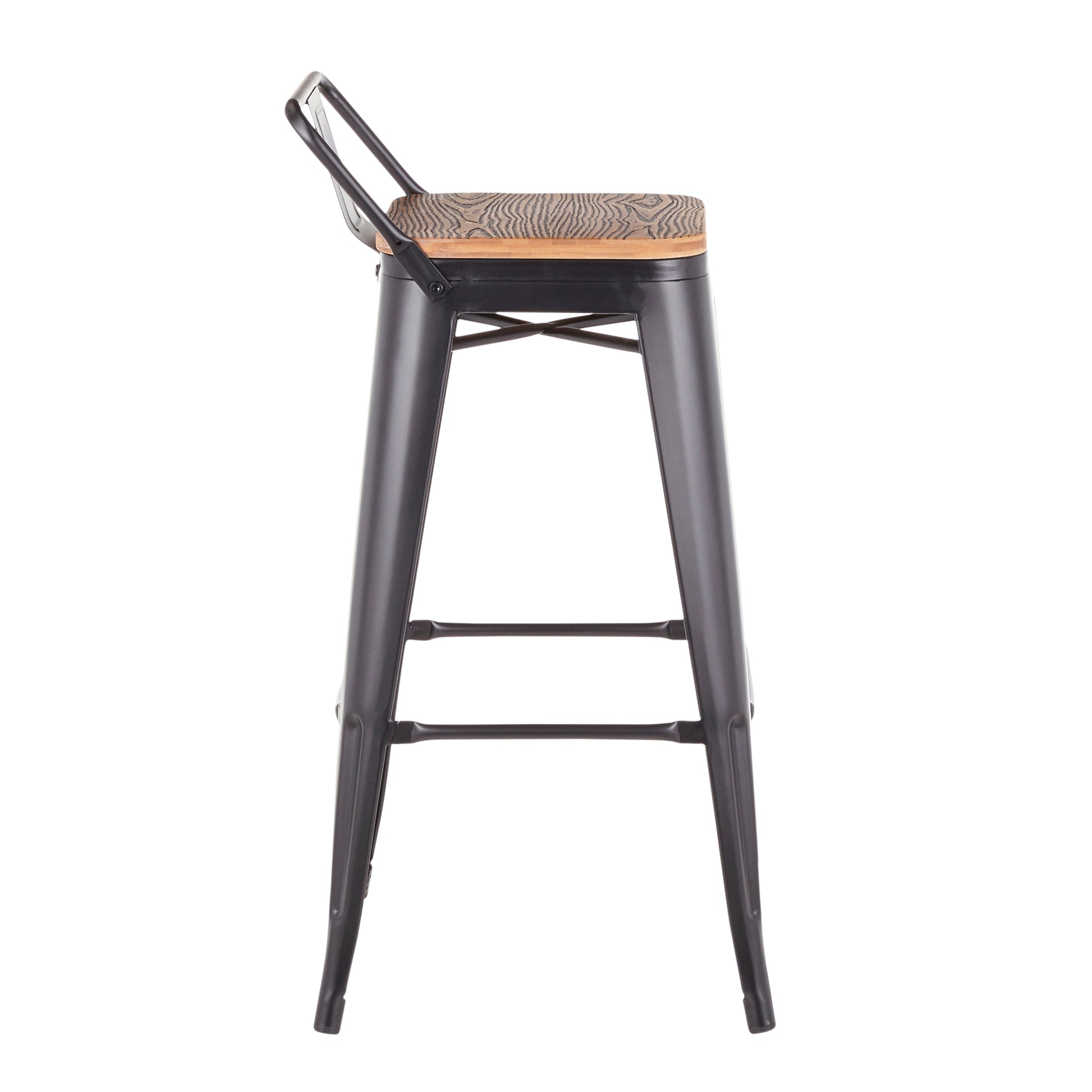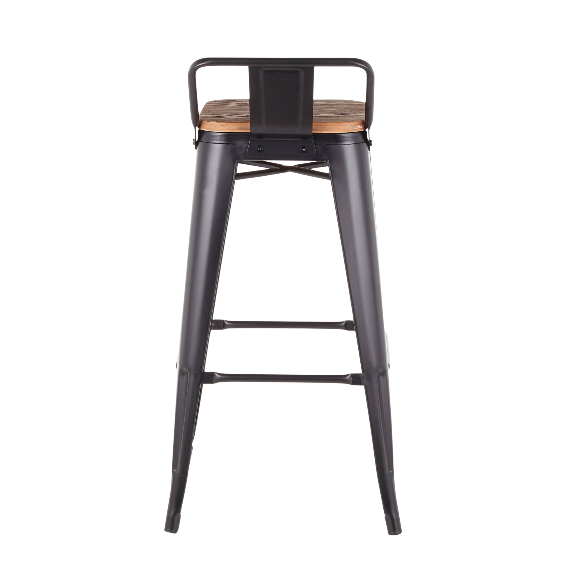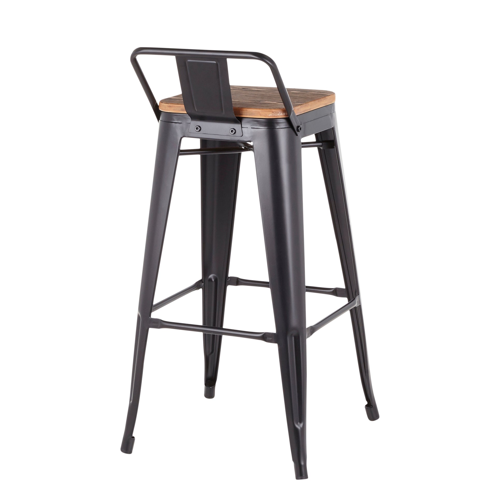Oregon Industrial Low Back Barstool in Black Metal and Wood-Pressed Grain Bamboo by LumiSource - Set of 2