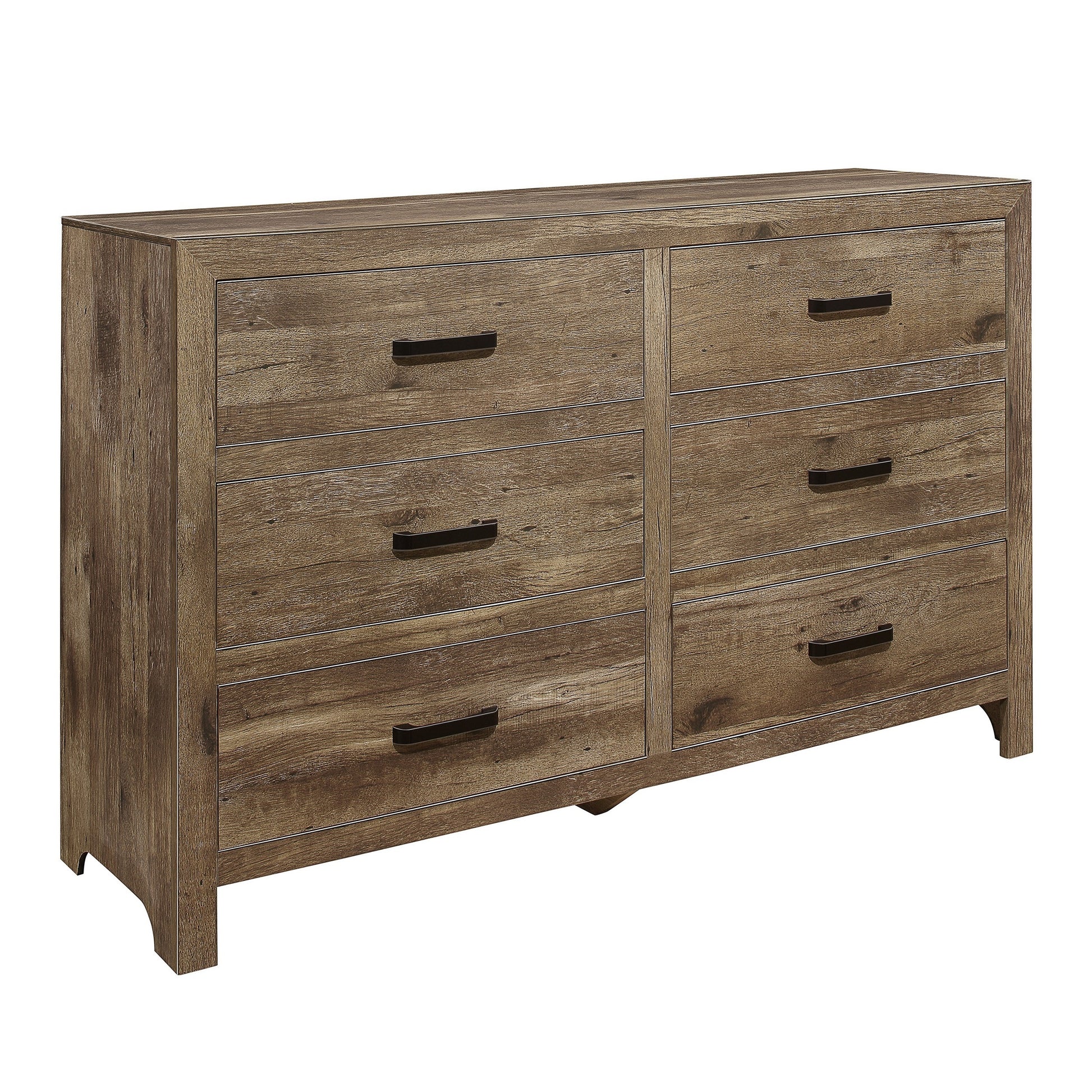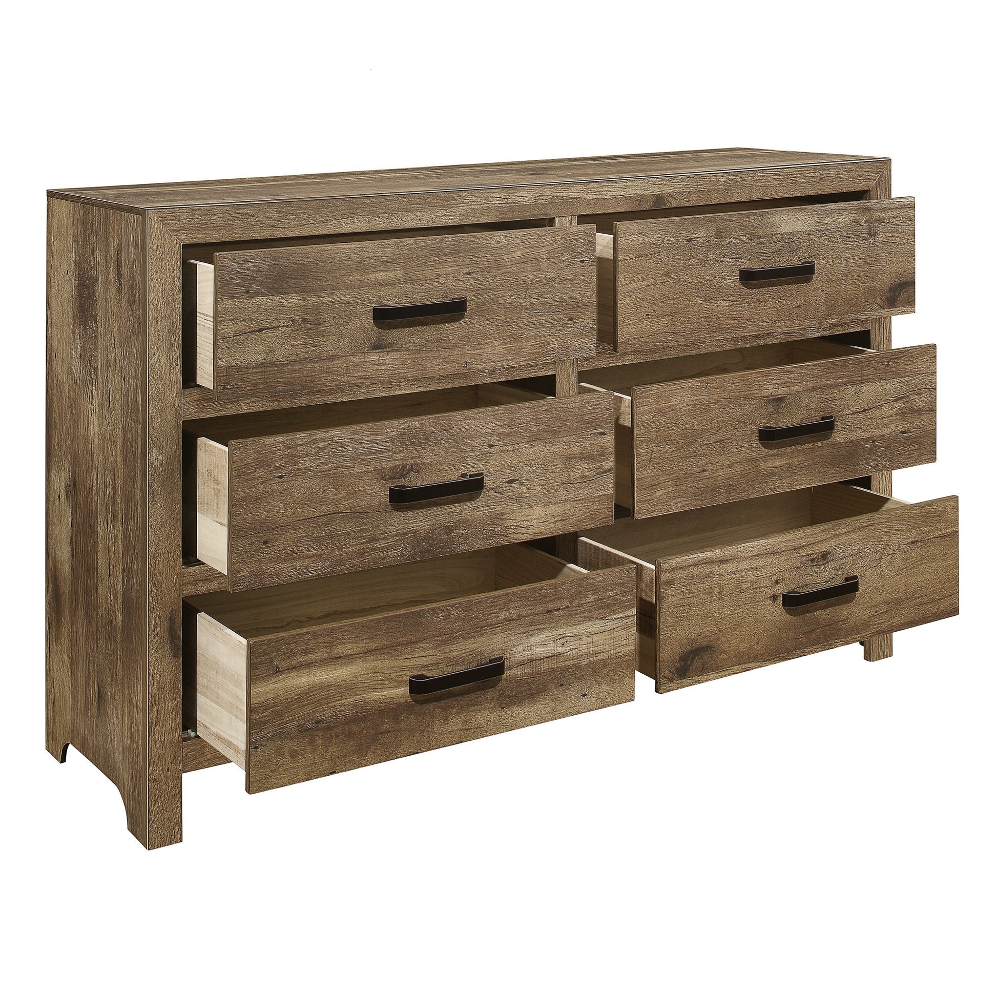 Rustic Style Dresser w 6 Storage Drawers Weathered Pine Finish Wooden Bedroom Furniture