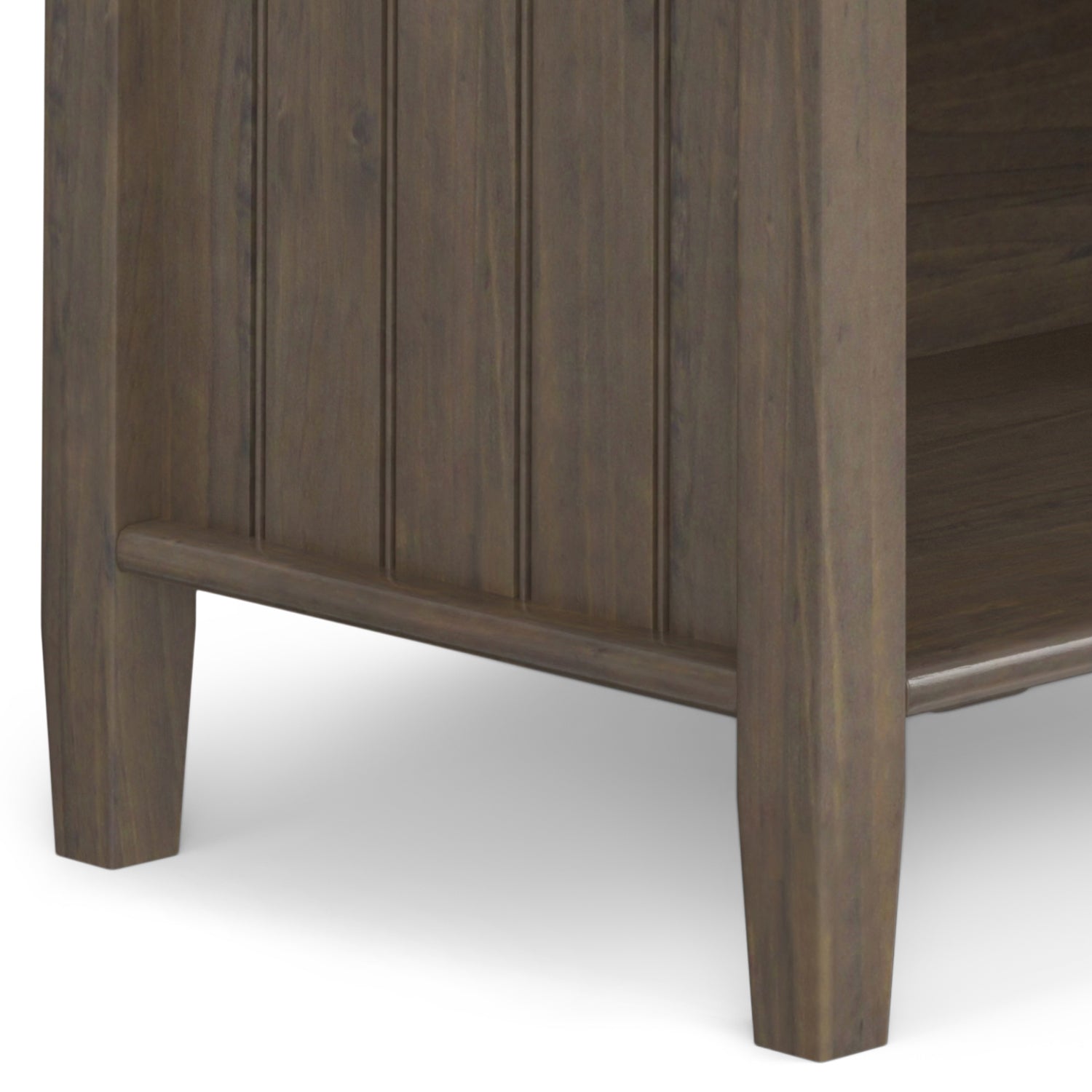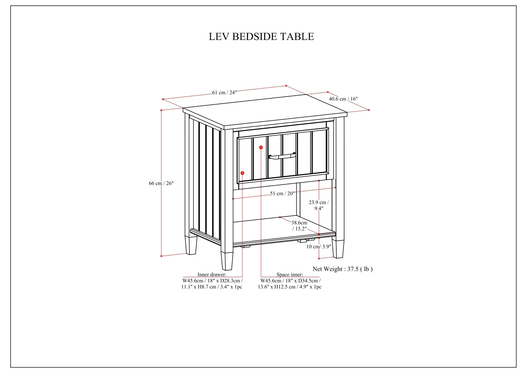 - Features one (1) drawer that opens to reveal a hidden shelf, open bottom storage area and metal drawer glides