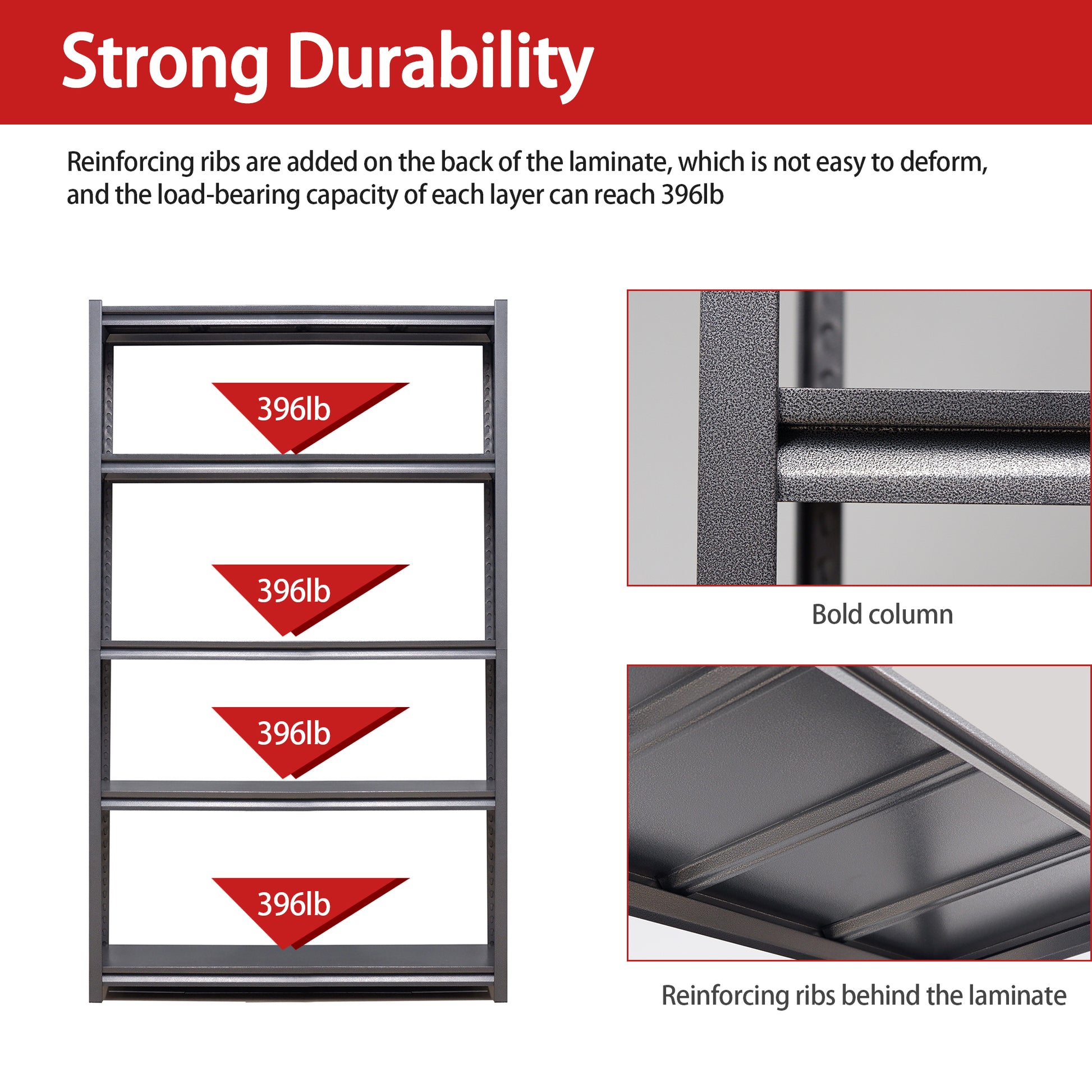 - 2000LBS Capacity: Each solid thickened metal shelf can hold up to 400 lbs, with a total capacity of 2000 lbs, ensuring stability and durability.