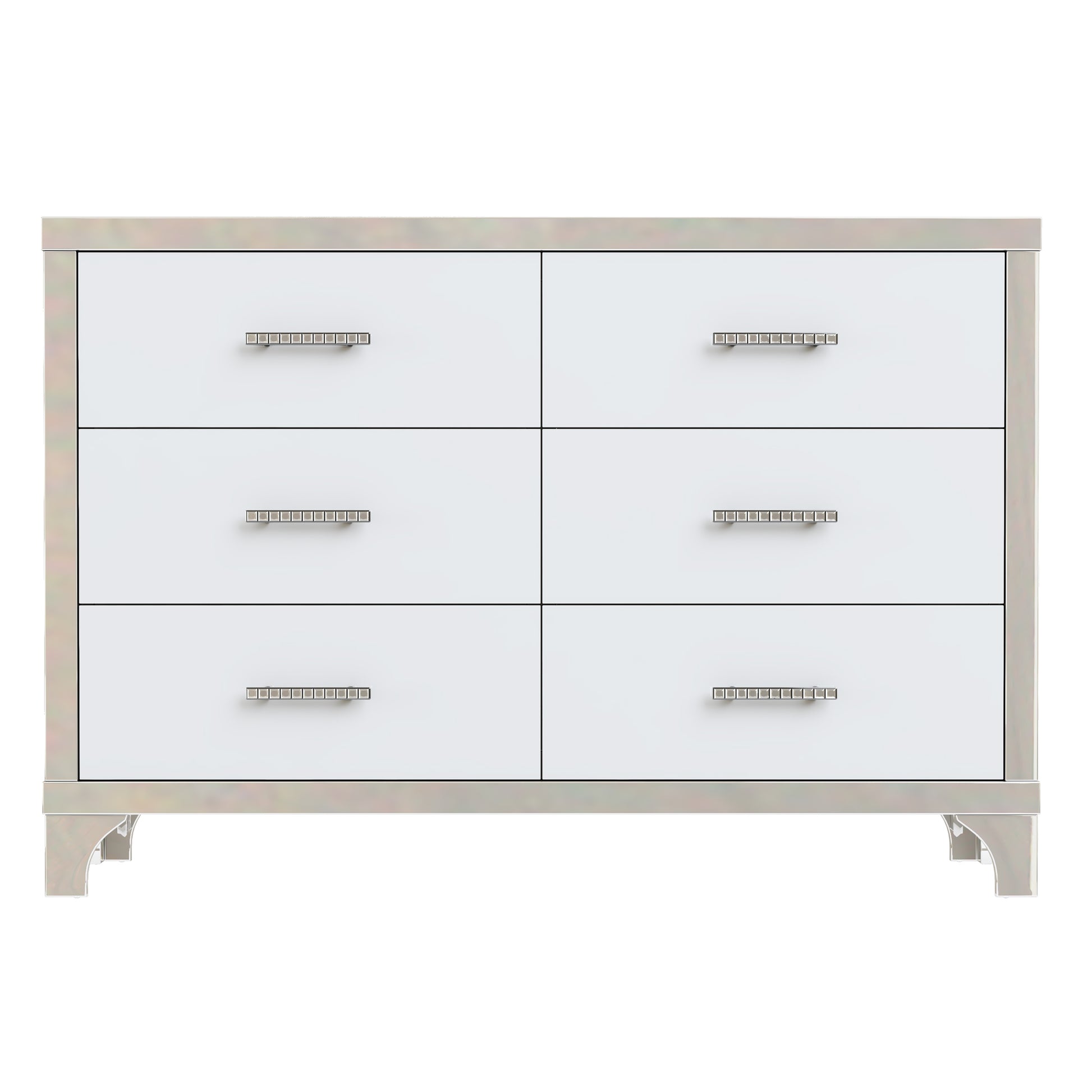 Organize your nighttime essentials with this dresser, featuring 6 drawers for clutter-free storage to save your space.The high gloss design of surface create a unique sense of space.It offers an excellent arrangement for your room to keep all things organized and free of clutter. The clean-lined design is built to last and given a relaxed, weathered finish.Modern style and versatility for many occasions, from large bedrooms to small apartments.