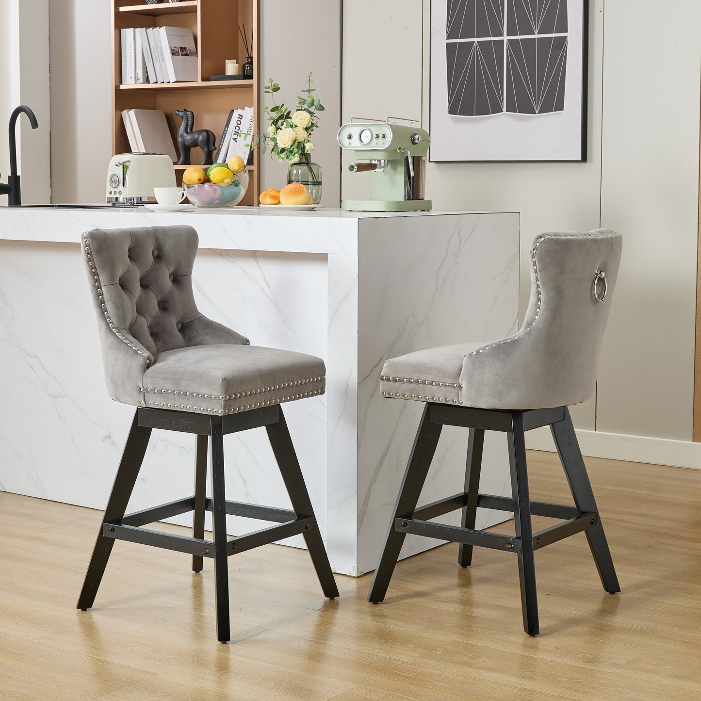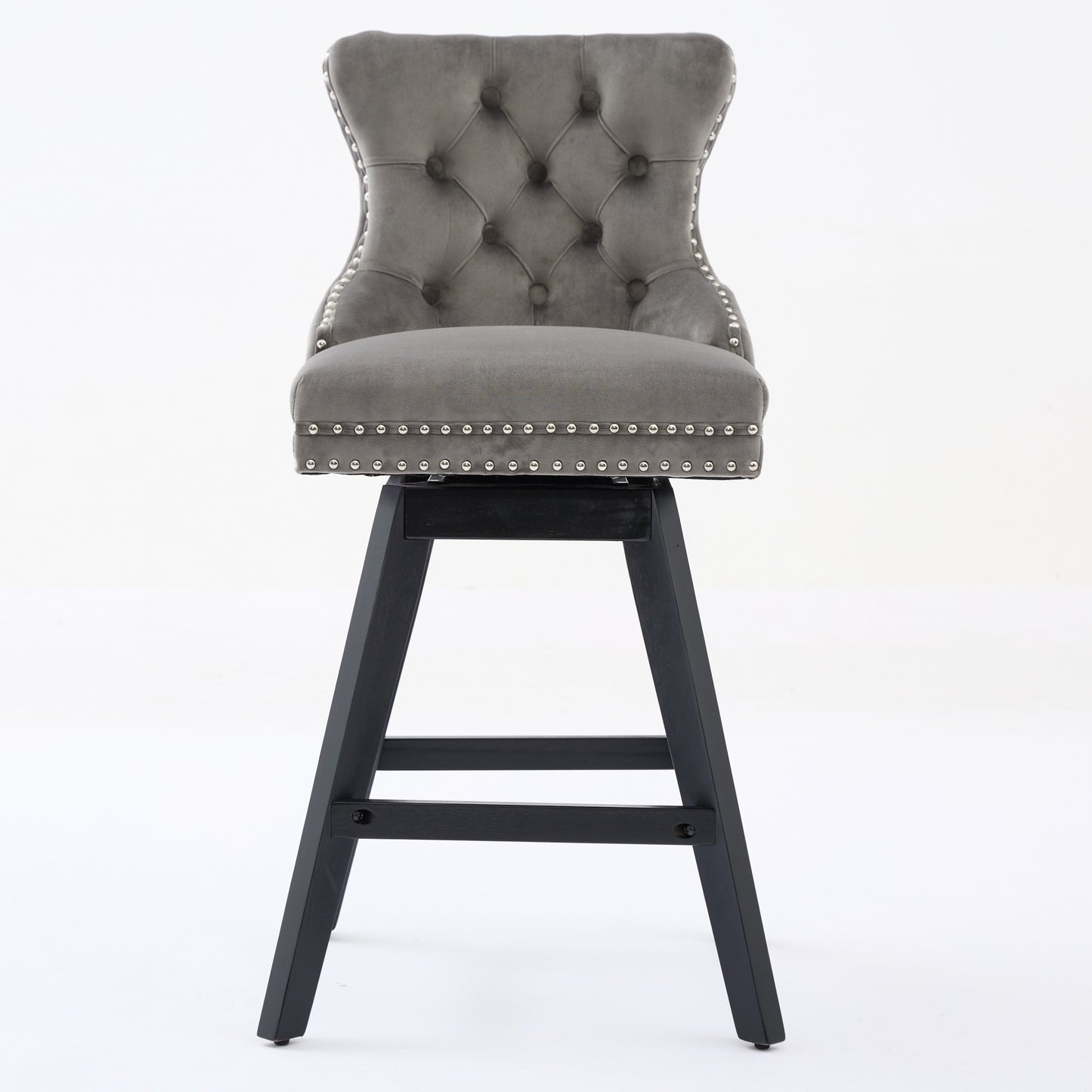 Swivel Velvet Barstools with Button Tufted Decoration and Wooden Legs, and Chrome Nailhead Trim, Leisure Style Bar Chairs,Bar stools, Set of 2 (Gray),SW1860GY