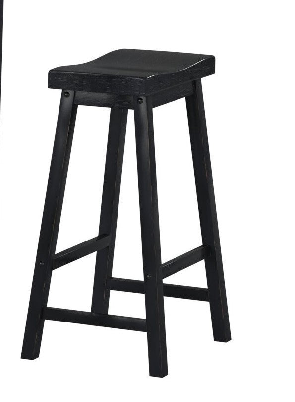 Black Finish 29-inch Bar Height Stools Set of 2pc Saddle Seat Solid Wood Casual Dining Home Furniture