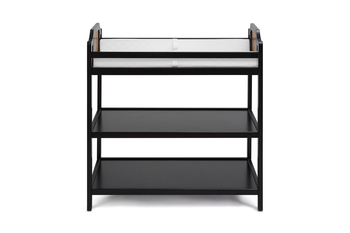 - The coordinating, Suite Bebe Brees changing table is the easiest and safest place to change your baby. Made with the same quality and design of the Suite Bebe Brees crib, it’s the perfect addition to your nursery. Designed with two open storage shelves for those diapers and baby necessities. However, when you no longer need it as a changing table, it’s the perfect shelf for your child’s toys and books. And even later for yourself, it’s the perfect bar cart!