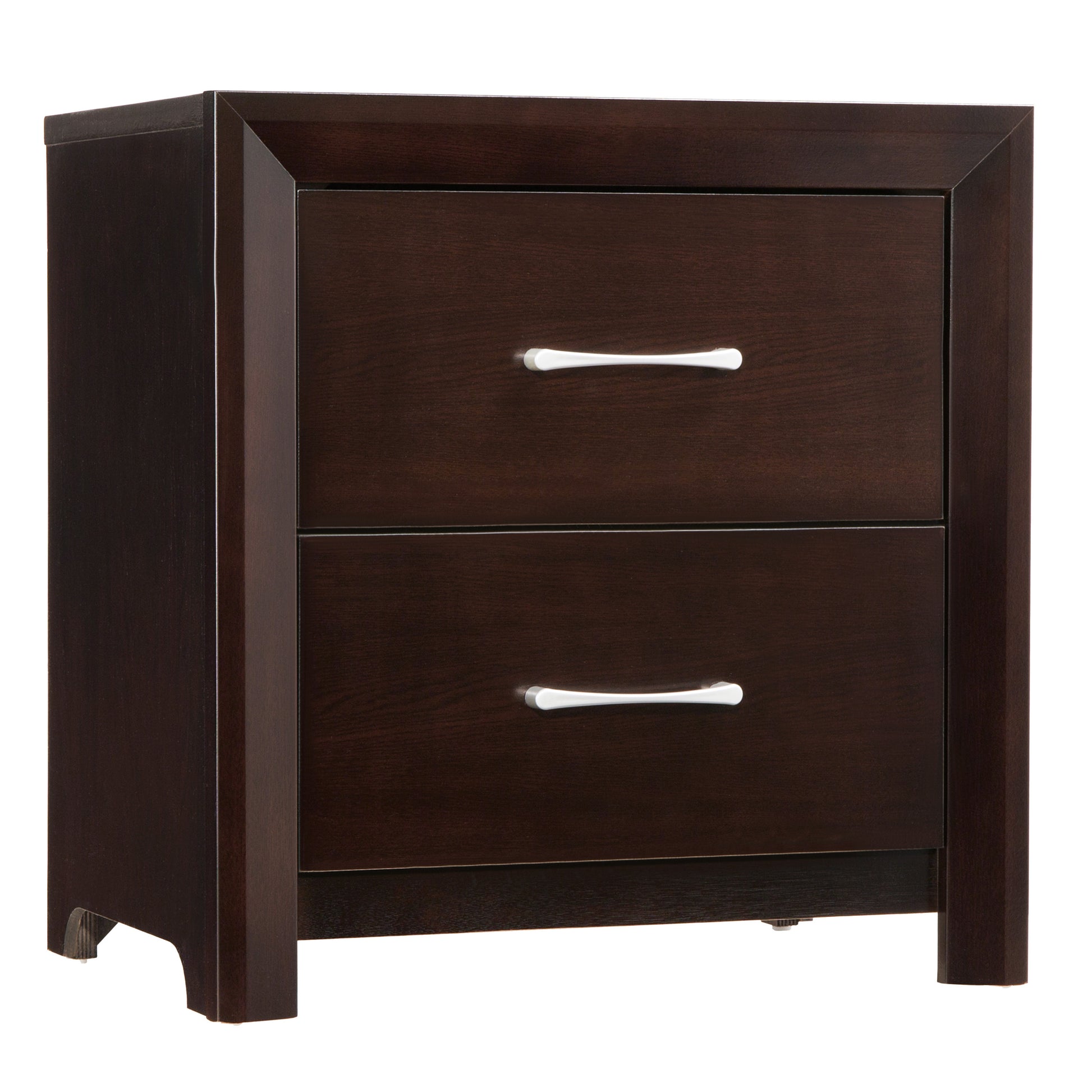 Espresso Finish Contemporary Design 1pc Nightstand of Drawers Silver Tone Pulls Bedroom Furniture