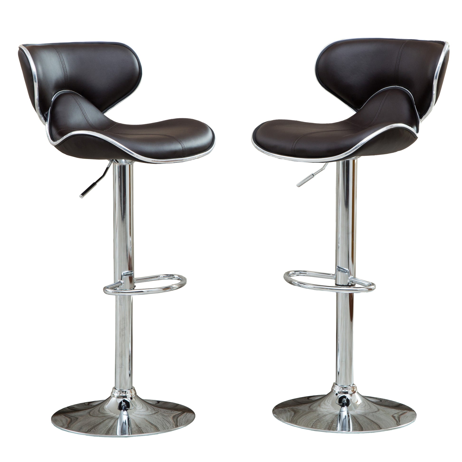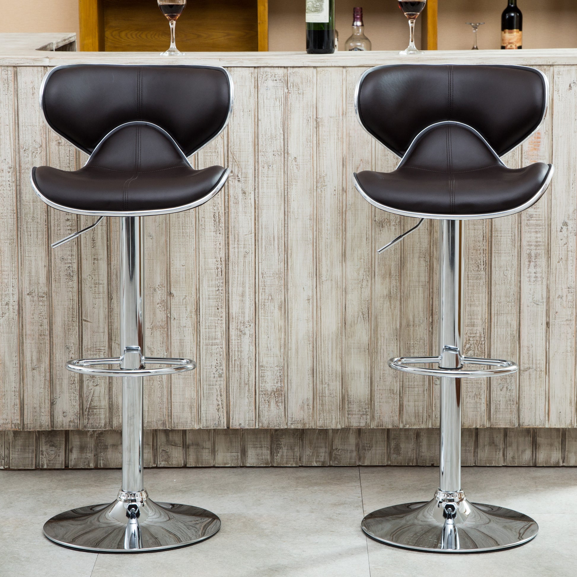 Masaccio Upholstery Airlift Adjustable Swivel Barstool with Chrome Base, Set of 2, Dark Brown