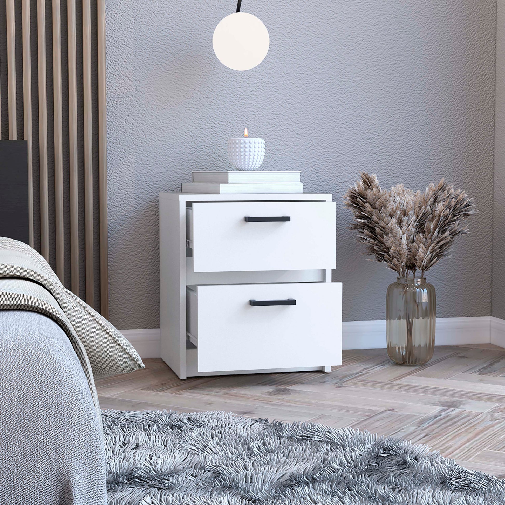 Trivor 2 Drawers Nightstand , End Table, Side Table Metal Handles -White