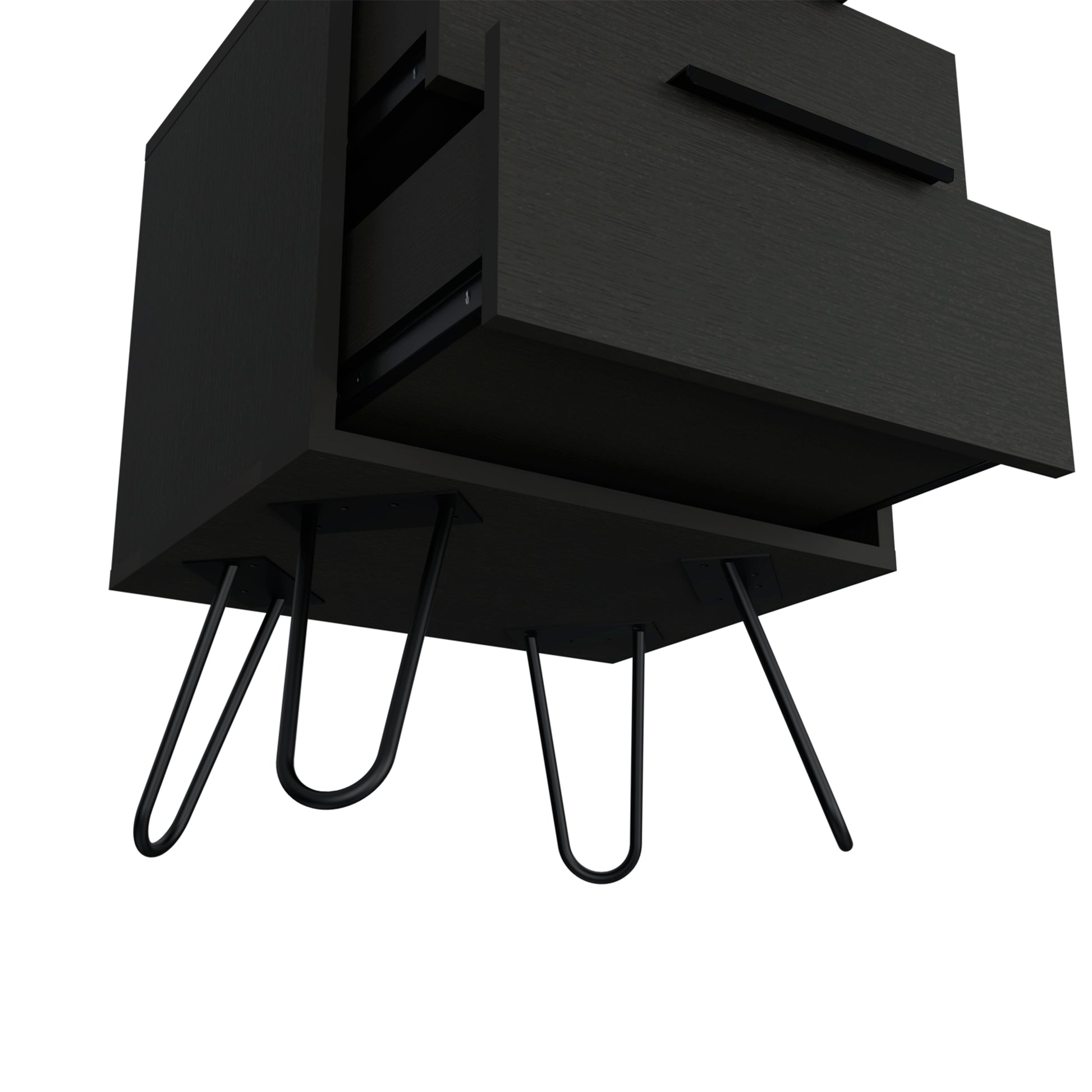 Nightstand Skyoner 2, Harpin Legs, Two Drawers, Black Wengue Finish