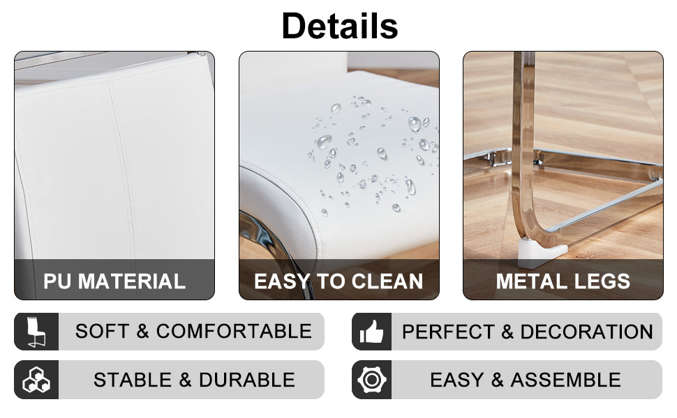Modern minimalist dining table. Imitation marble glass sticker desktop, stainless steel legs, stable and beautiful. 6 premium PU seats. 63 inches * 35.4 inches * 29.5 inches DT-69 C-1162