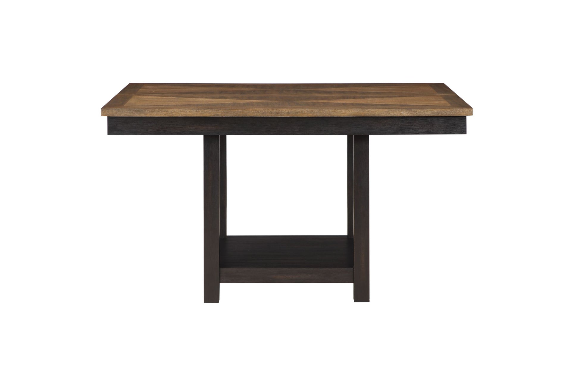 - Space-saving square table design seats eight guests in a comfortably conversational configuration