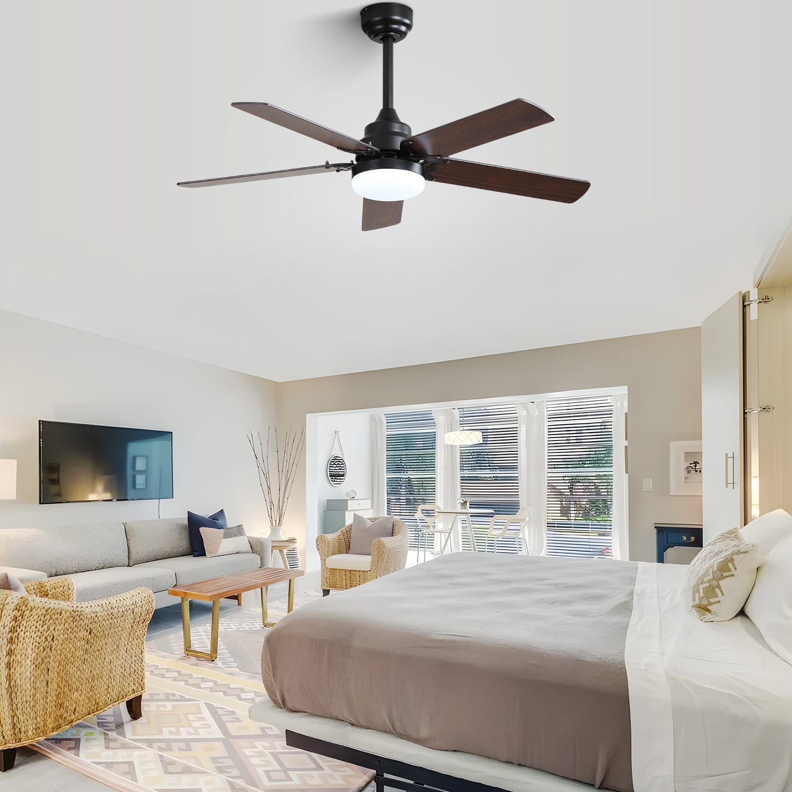 - Modern Dual-Finish Blades: Customize your space with blades featuring a black with strip finish on one side and a light finish on the other, allowing you to match your home decor seamlessly.