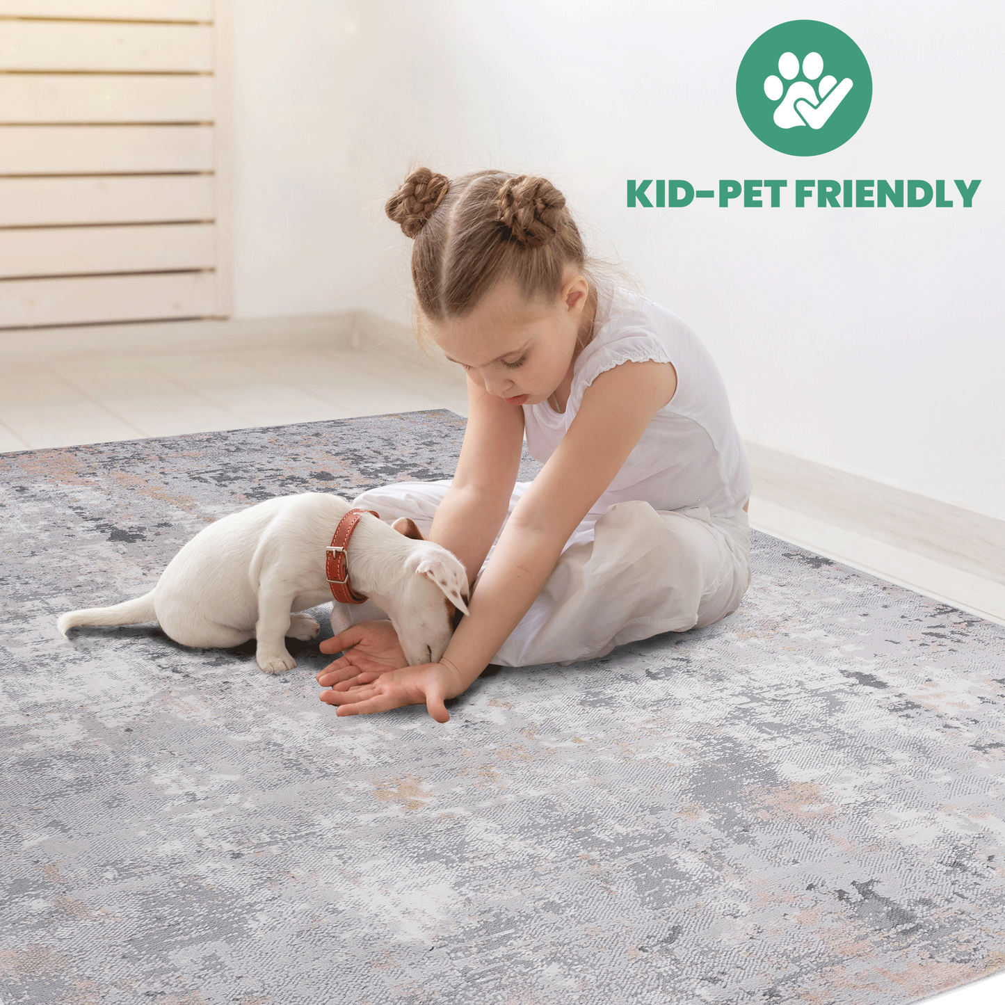 5X7 Grey/Multi/Abstract Non-Shedding Living Room Bedroom Dining Home Office Stylish and Stain Resistant Area Rug