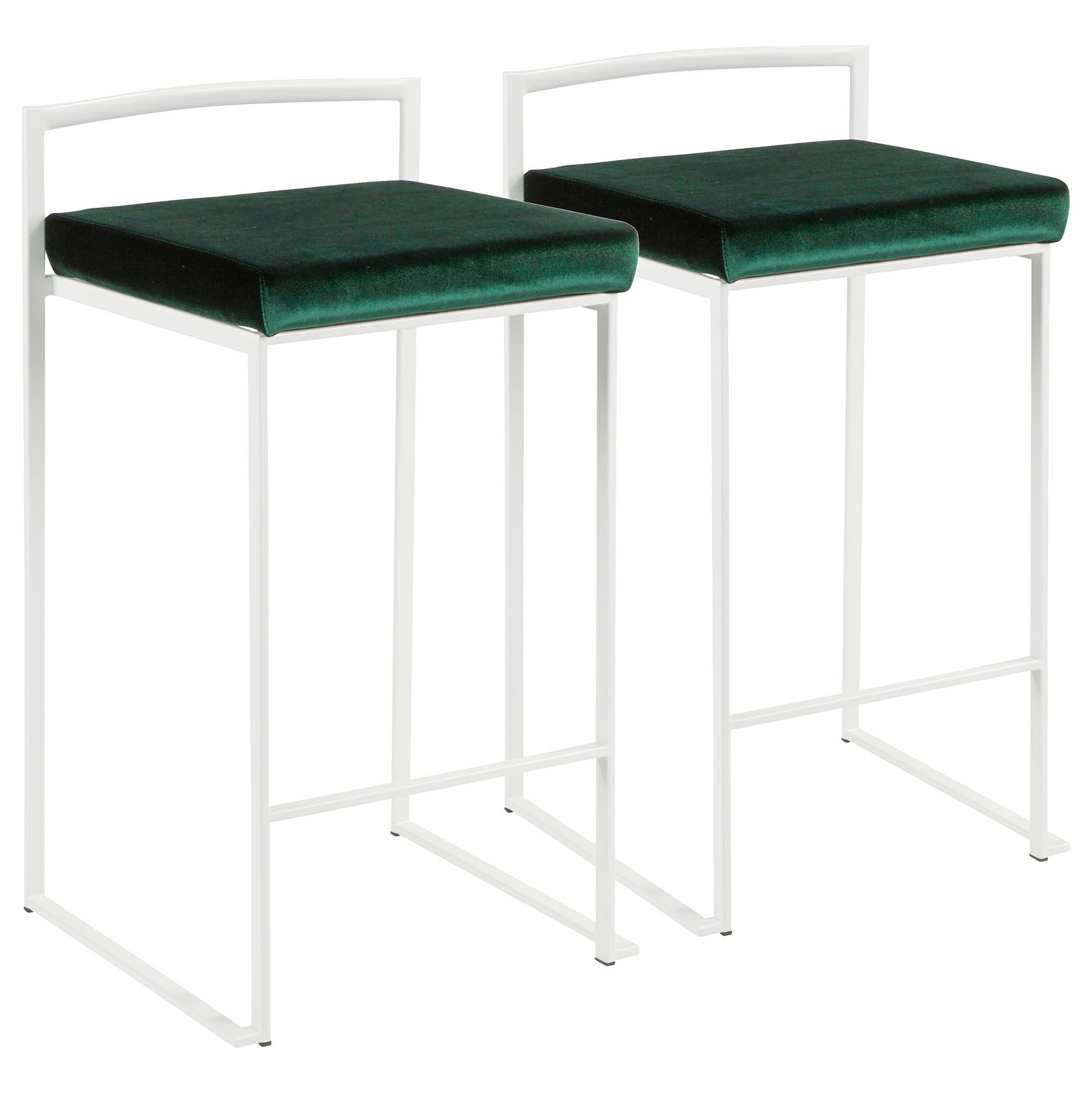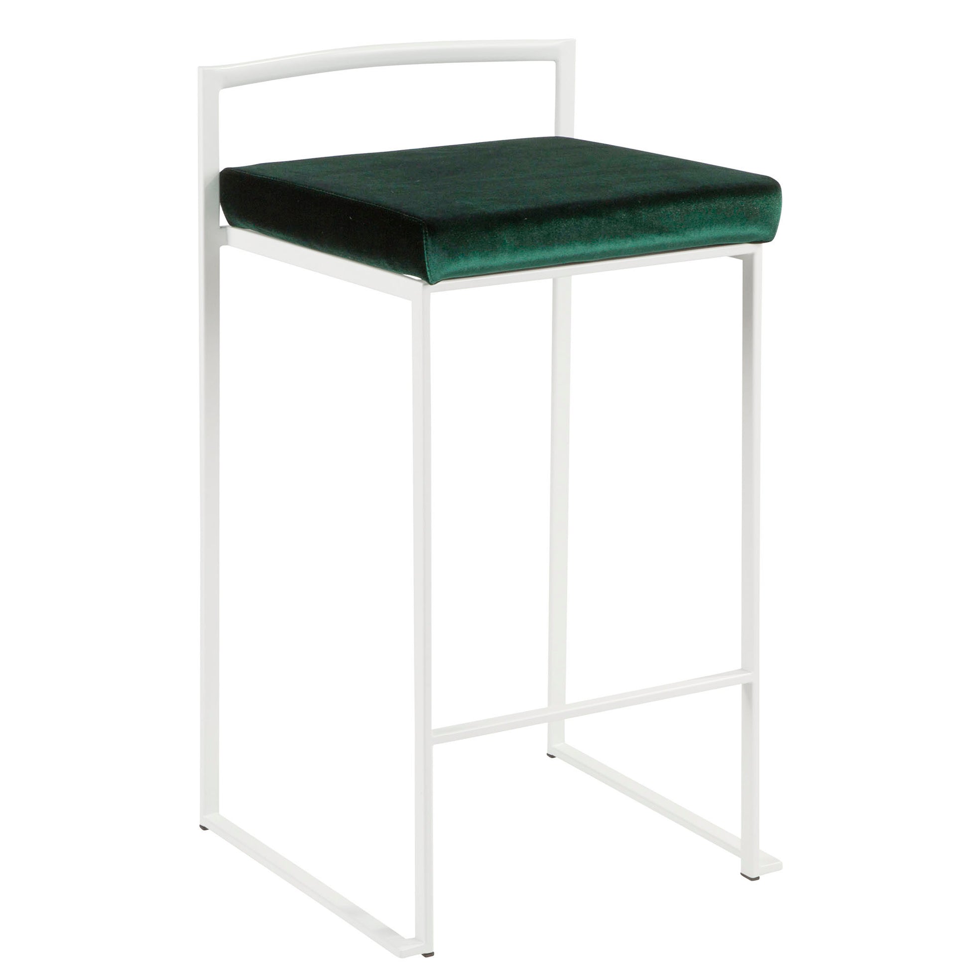 Fuji Contemporary Stackable Counter Stool in White with Green Velvet Cushion by LumiSource - Set of 2