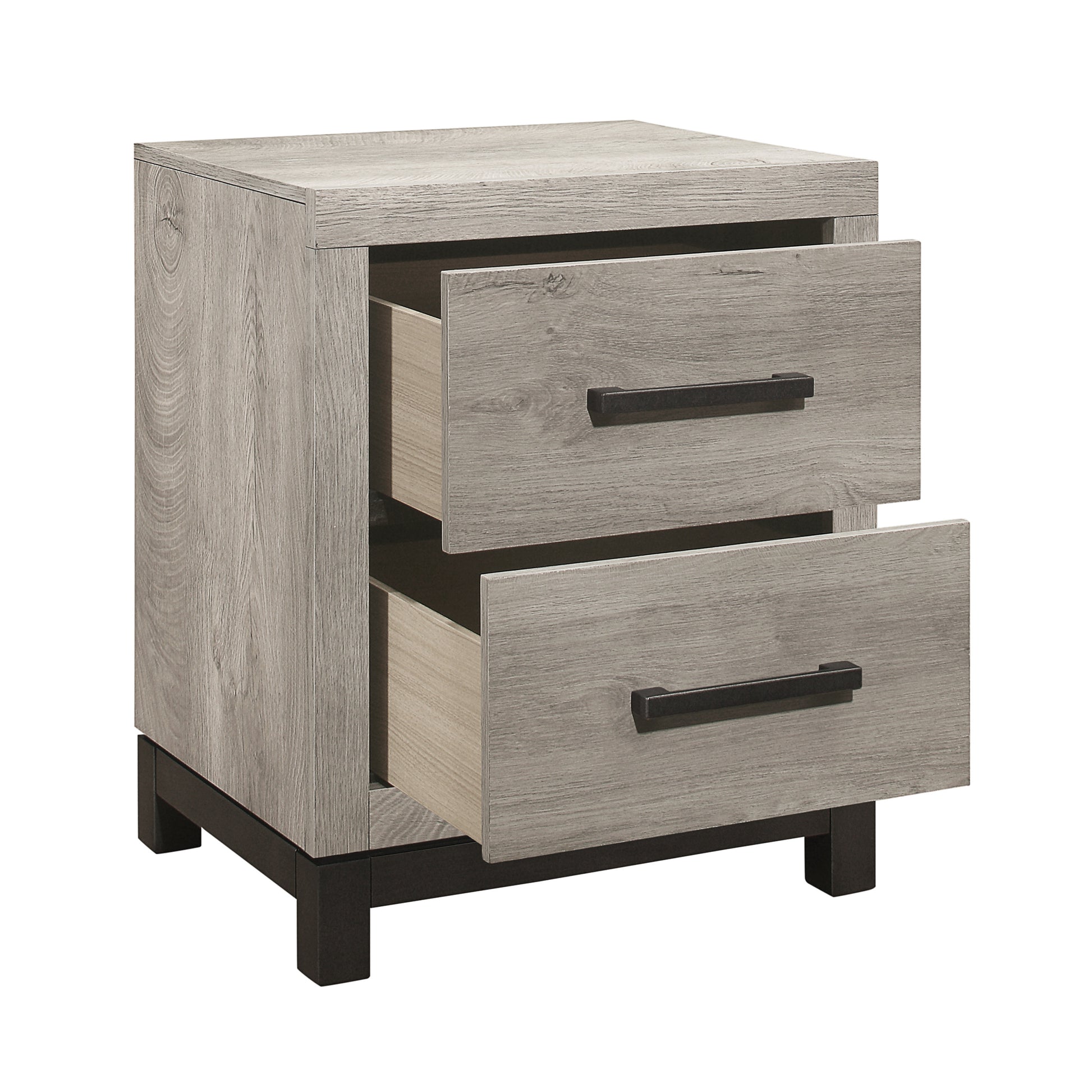 Attractive Gray Finish 1pc Nightstand of 2x Drawers Metal Bar Hardware Premium Melamine Board Wooden Bedroom Furniture