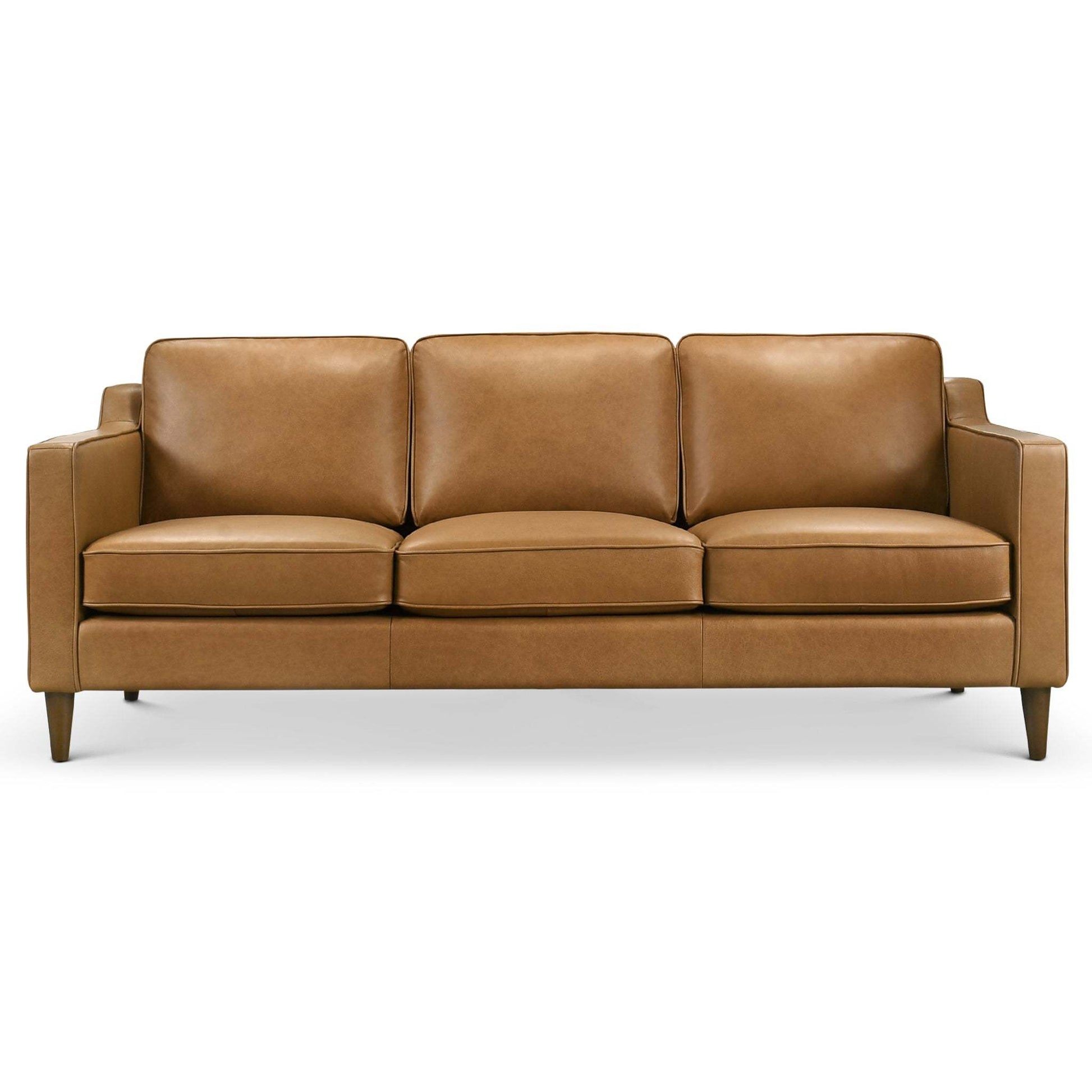 Cooper Mid Century Modern Tan Leather Sofa with Easy Maintenance and Solid Wood Frame