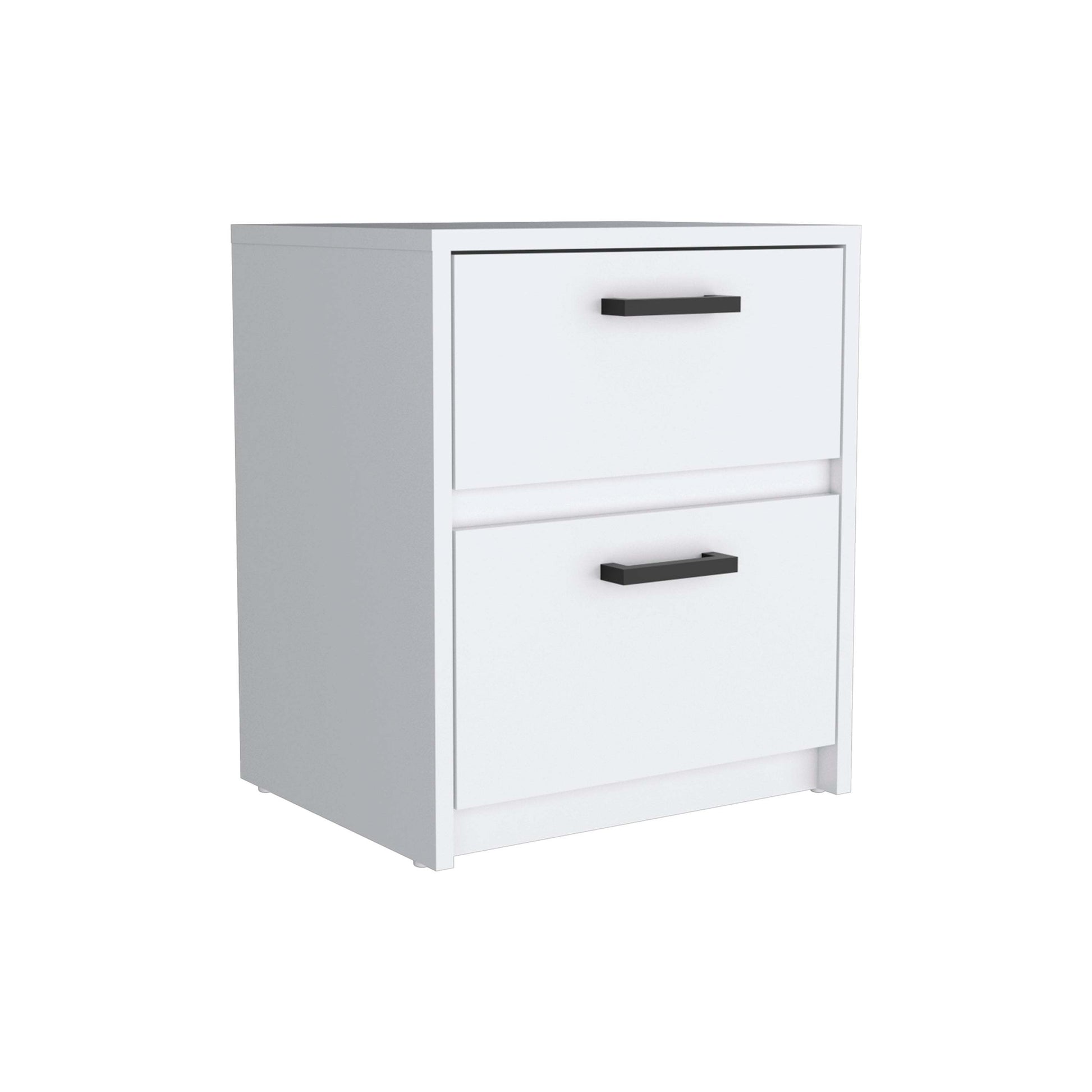 Nightstand 18"H , 2 Drawers with Metal Handles, White