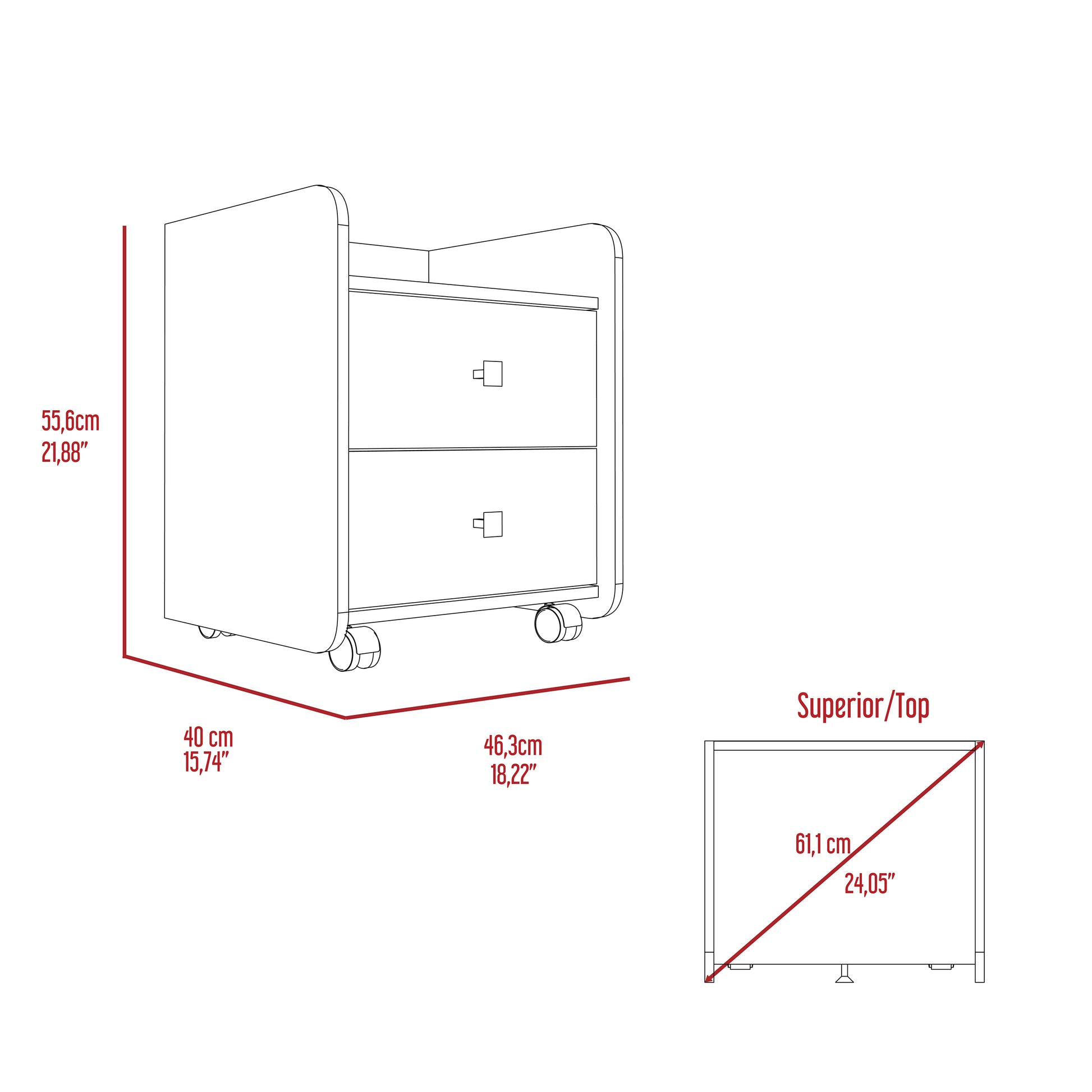 - Superior top dimensions: 17.05" W x 15.70" D; drawer dimensions: 14.84" W x 15.70" D x 5.19" H