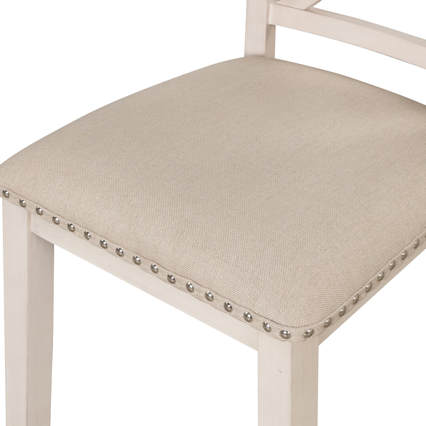 - 4 Solid Wood Dining Chairs - 4 Chairs and table legs made of solid wood, this dining table set is very sturdy and durable for a long lifespan.4 Chairs are designed with curved background and thick seat pads to promote comfort, giving you a relaxed seating experience. 250-pound weight capacity per chair.