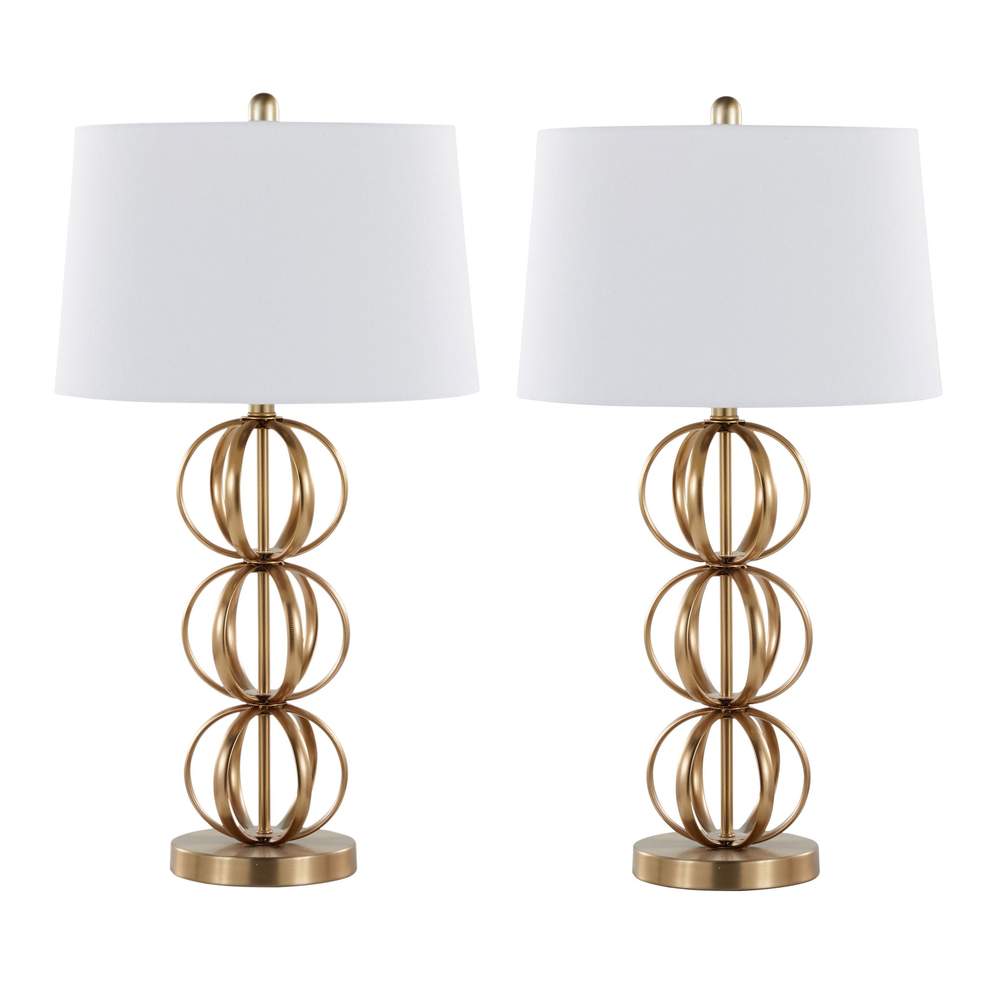 Linx 29' Contemporary Metal Table Lamp in Gold Metal and White Linen Shade from Grandview Gallery by LumiSource - Set of 2