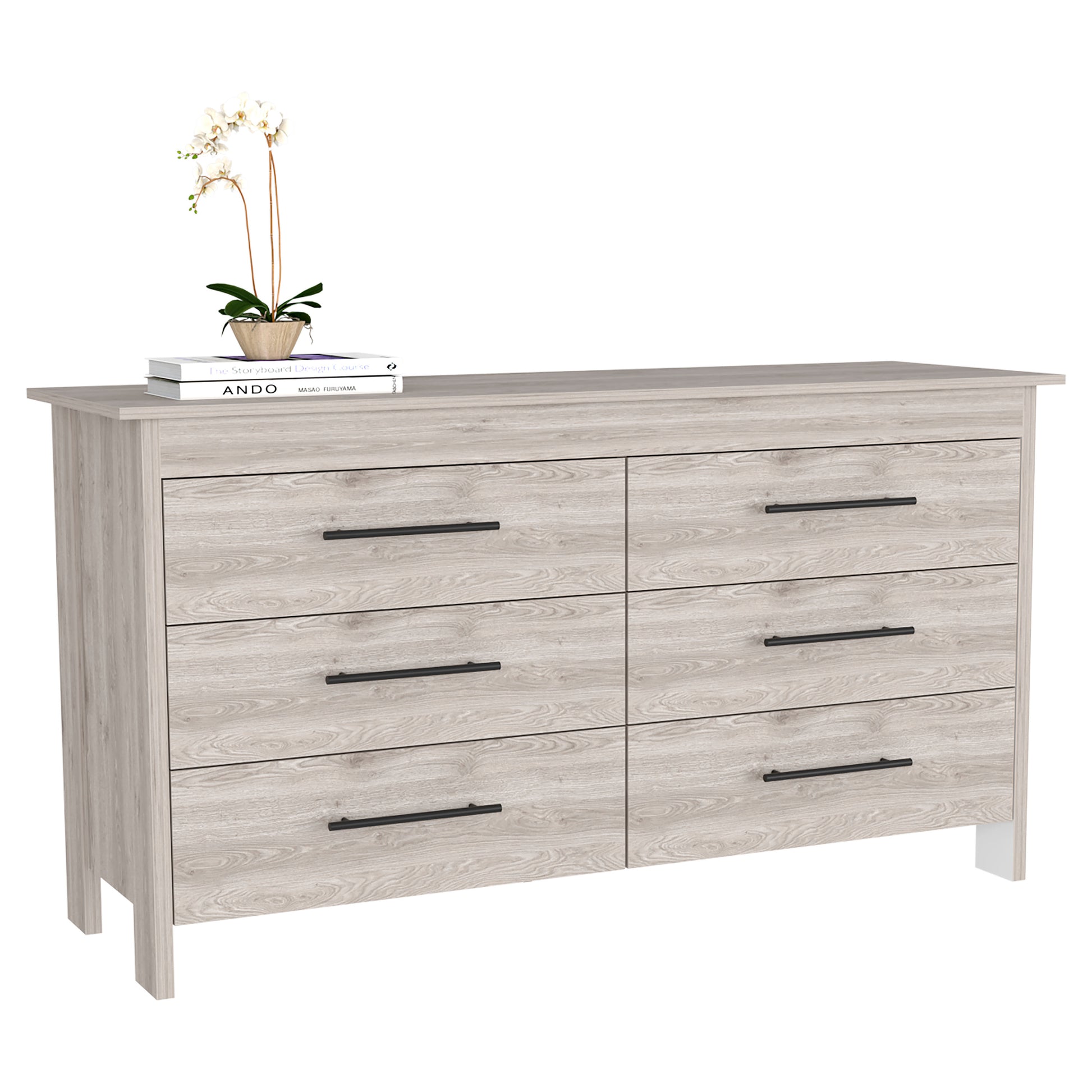 Double Dresser, Four Legs, 6 Drawer, Superior Top, Light Gray