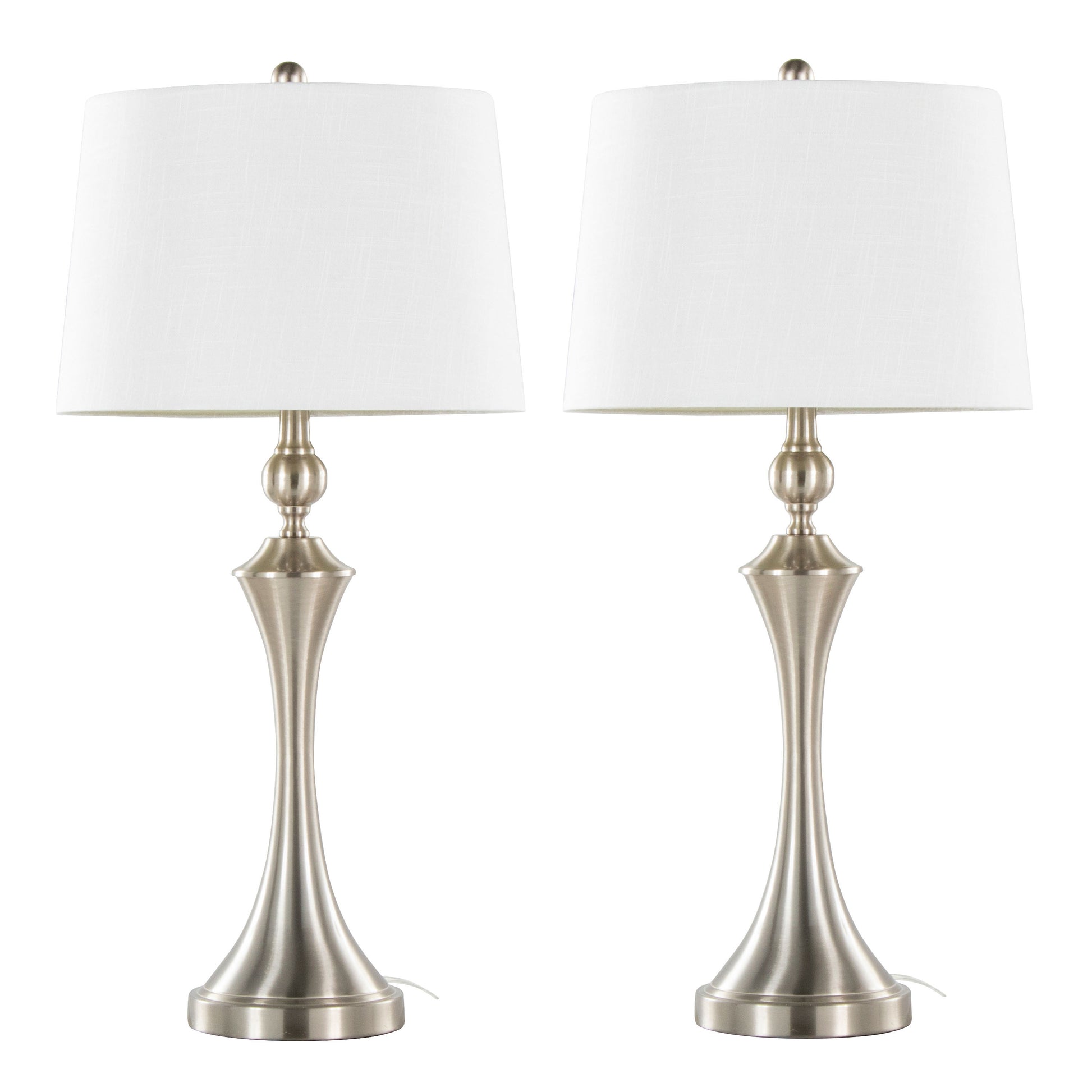 Flint 30" Contemporary Metal Table Lamp in Brushed Nickel with White Textured Slub Linen Shade and Built-In USB Port from Grandview Gallery by LumiSource - Set of 2