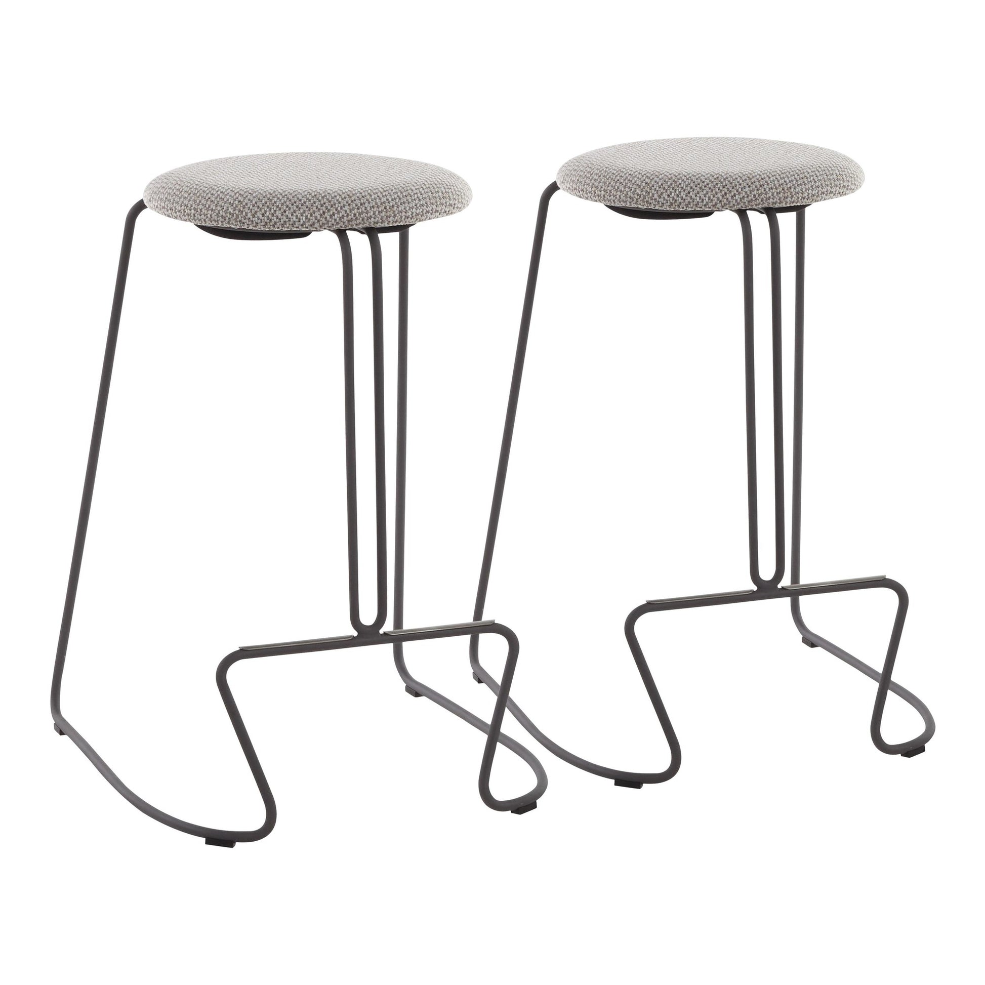 Finn Contemporary Counter Stool in Grey Steel and Light Grey Fabric by LumiSource - Set of 2