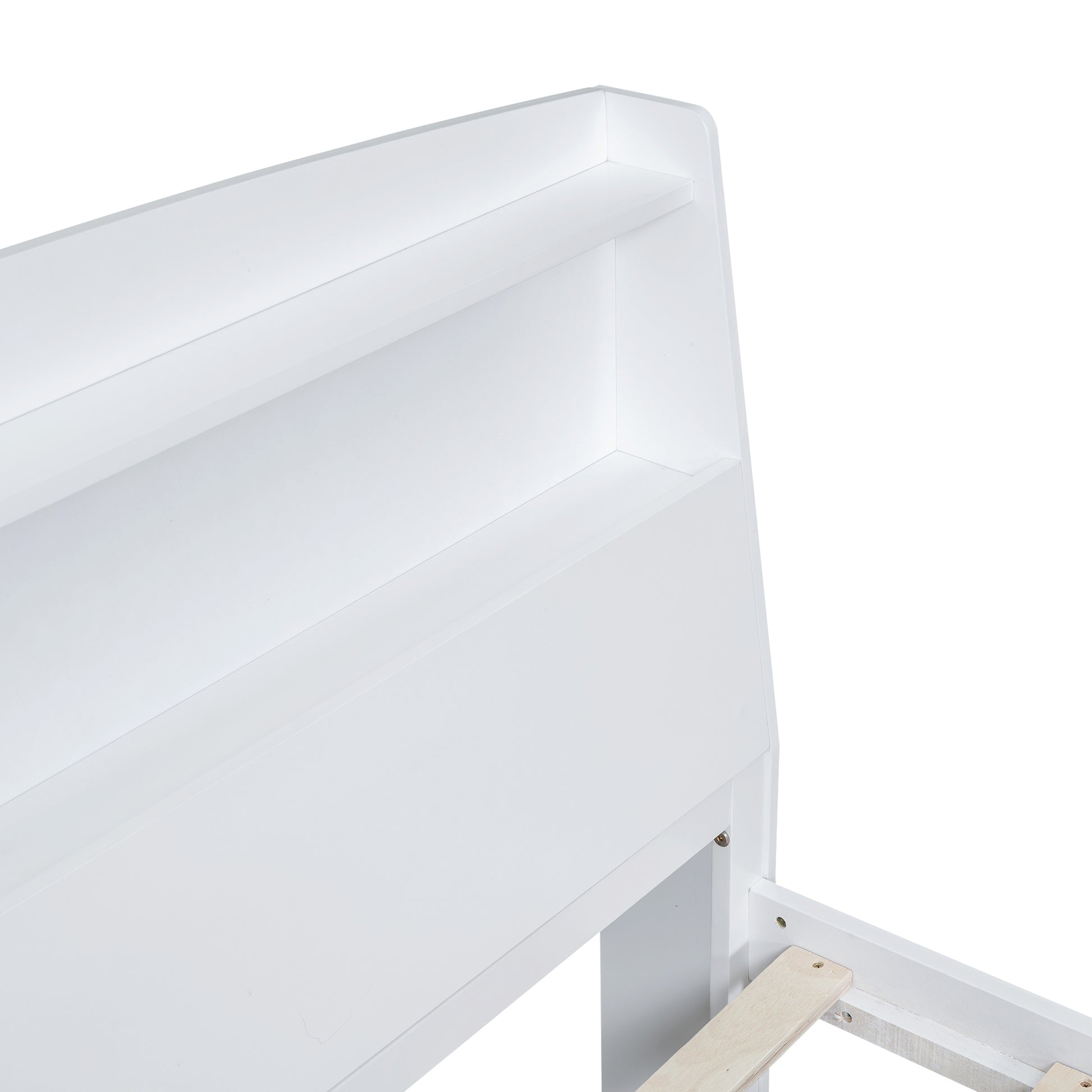 - [Multi-functional Headboard] Featuring a headboard with built-in shelves for arranging books or something else. LED can help you look for goods clearly and add warmth to the room.