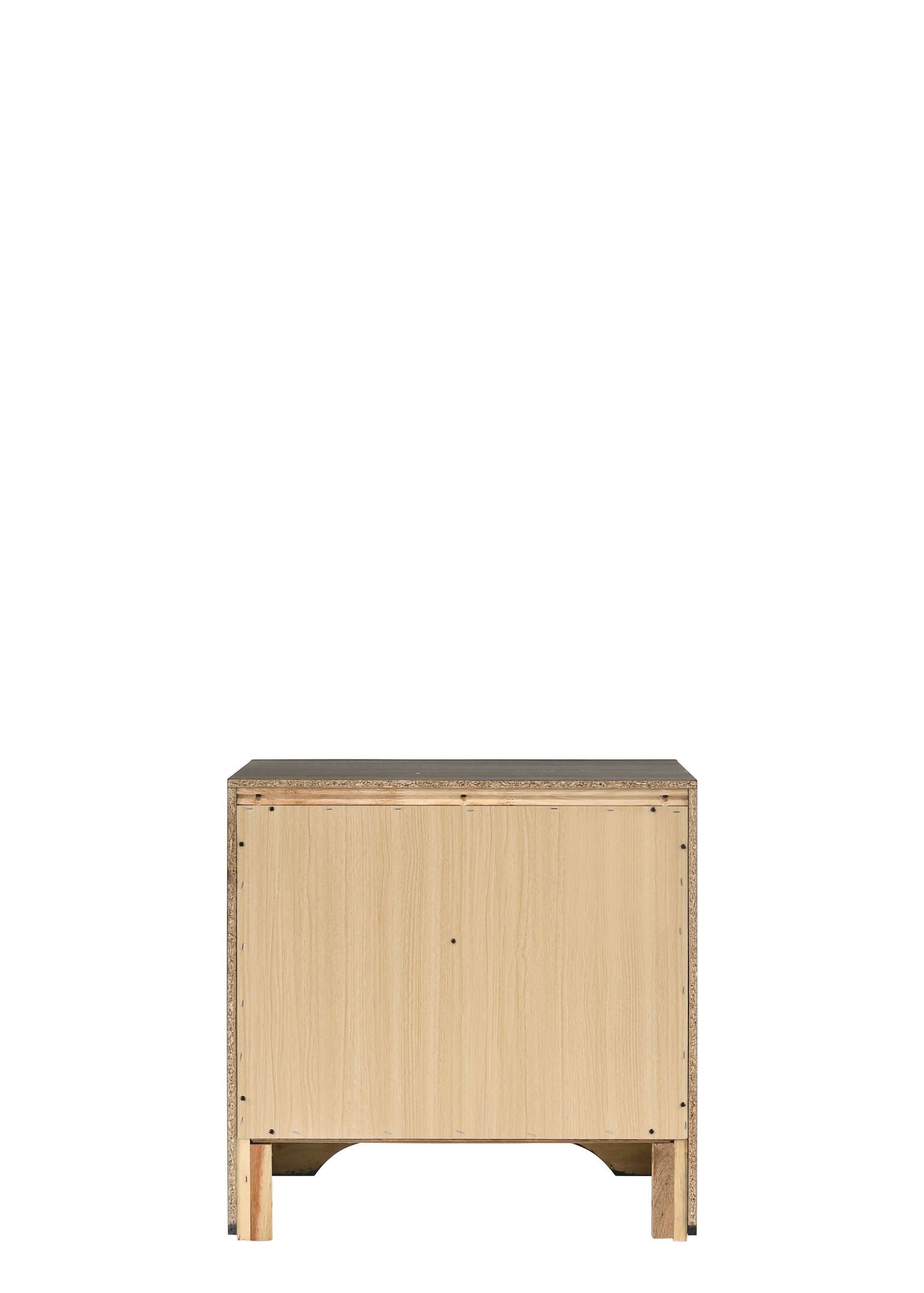 - The textured surface of the nightstand adds depth and visual interest, elevating its contemporary appeal.