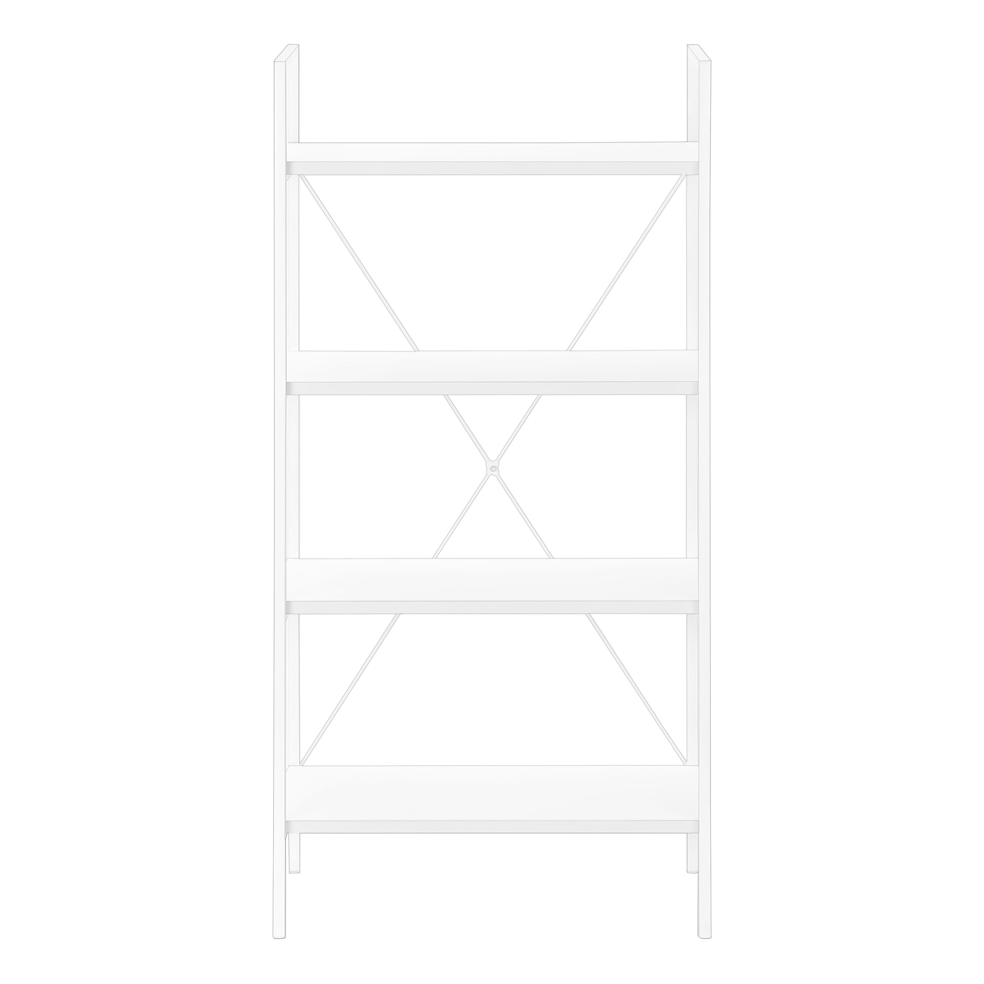 - This bookcase, finished in a white laminate has a space-saving design and 4 shelves for maximum versatility.