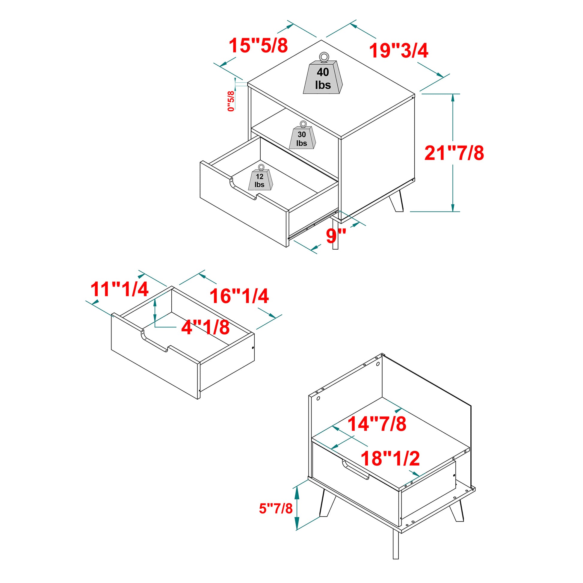 Modern 1-Drawer Nightstand with Open Cubby – Black