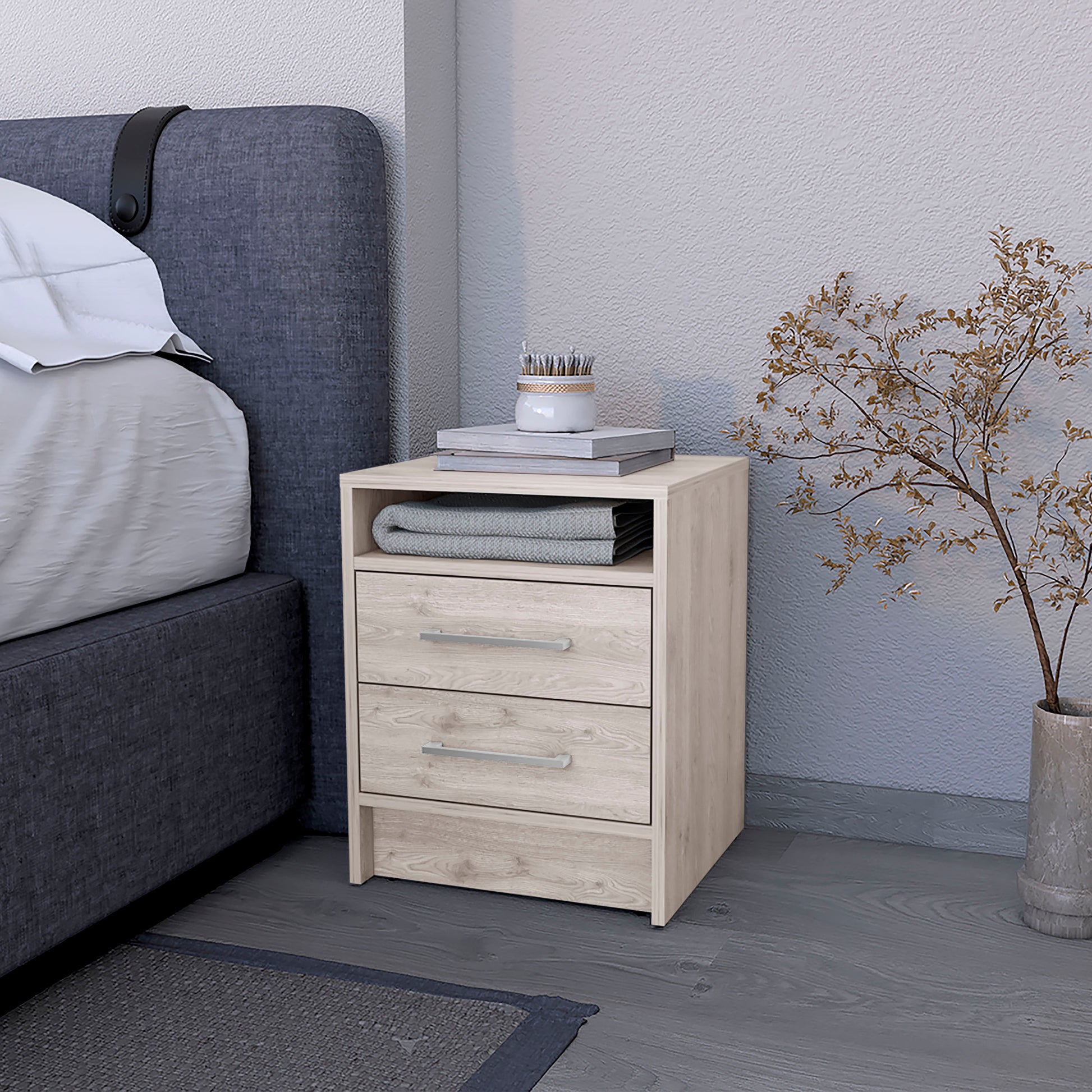 The Philadelphia Nightstand is perfect for your bedroom or living room; this Nightstand is a neat companion to store your personal belongings nest to your bed or sofa. The spacious top is great for placing your books, phone, or decorative items. A shelf below and two drawers are great options for that extra storage space you want next to your bed.