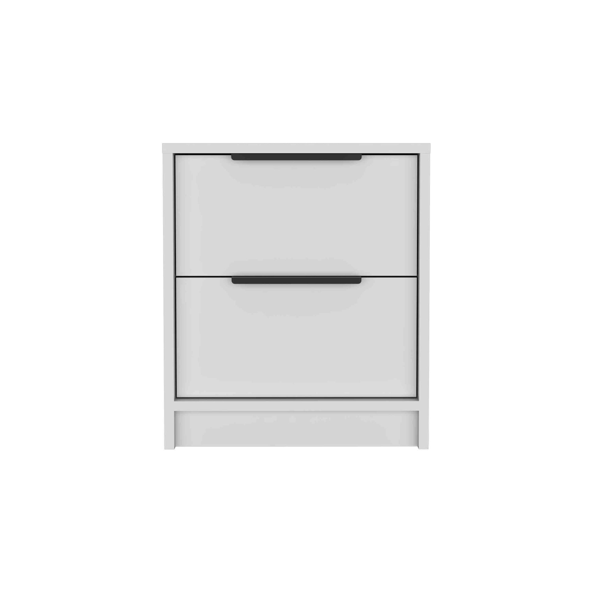 Kaia Nightstand , End Table, Side Table Two Drawers, Metal Handle -White