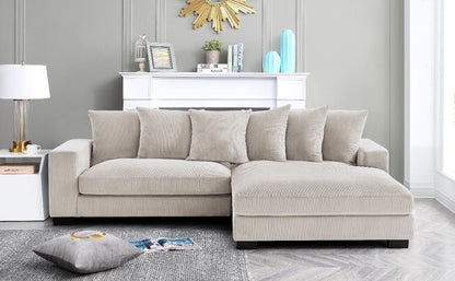 Container Furniture Direct Luxe Oversized Two-Piece Right Facing Sectional Couches for Living Room, 102.4-Inch L Shaped Sofa with Chaise, Upholstered with Corduroy Fabric, Ivory