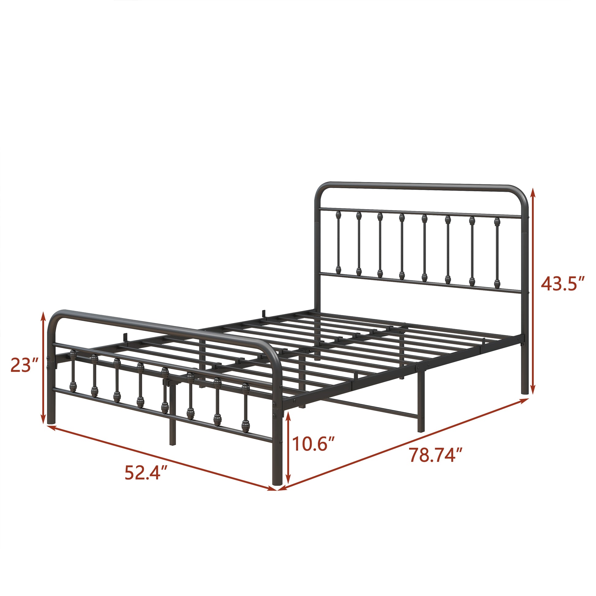 - Platform metal bed with no need for box spring provides valuable under-bed storage. Stylish appearance with vintage headboard and footboard