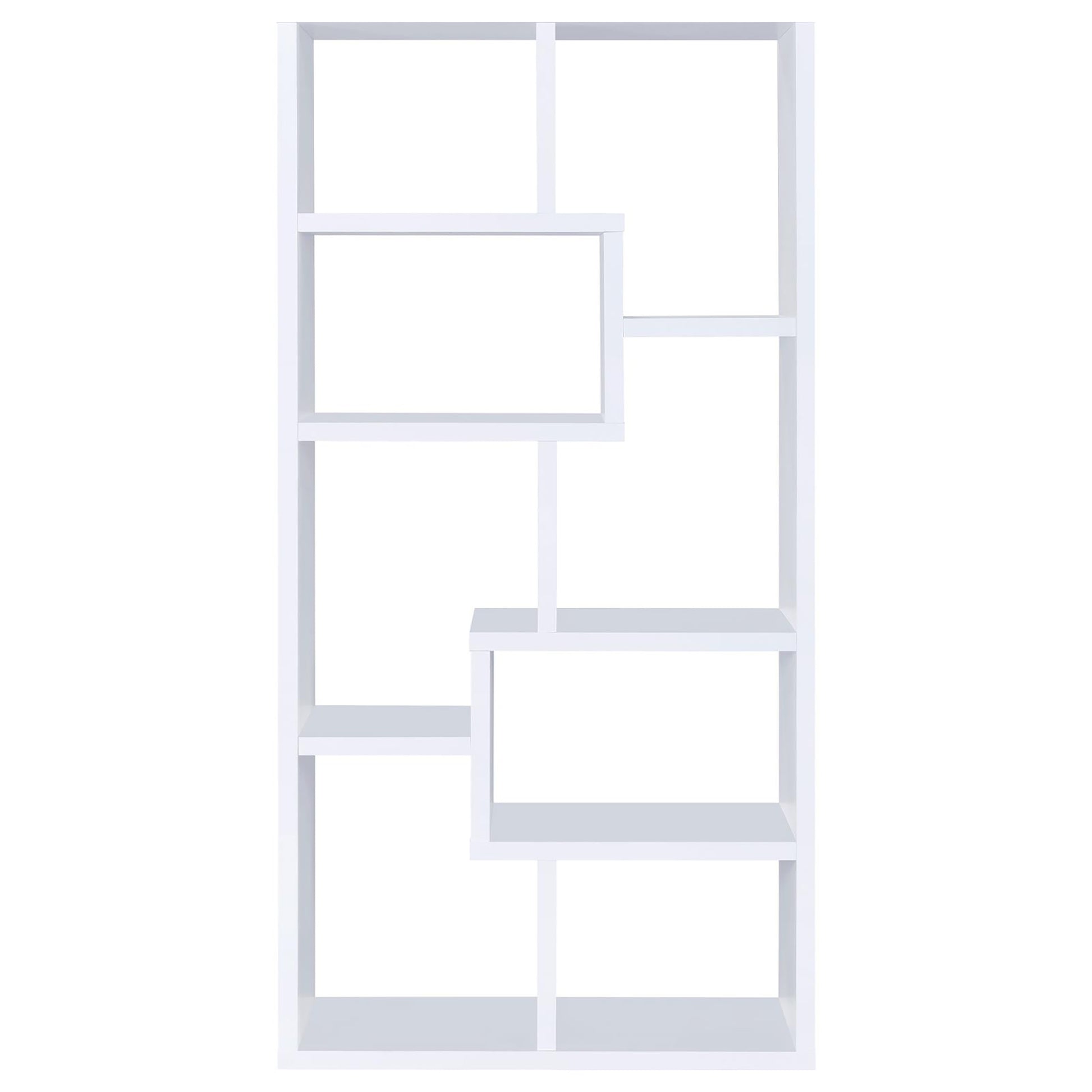 Eye-catching geometry in an abundance of shelves makes for plenty of space and an artful decor element with this bookcase. Display books and treasures in varying shapes, heights, and widths for visual interest and dimension. The bookcase is tall and comes in your choice of finish for versatile use