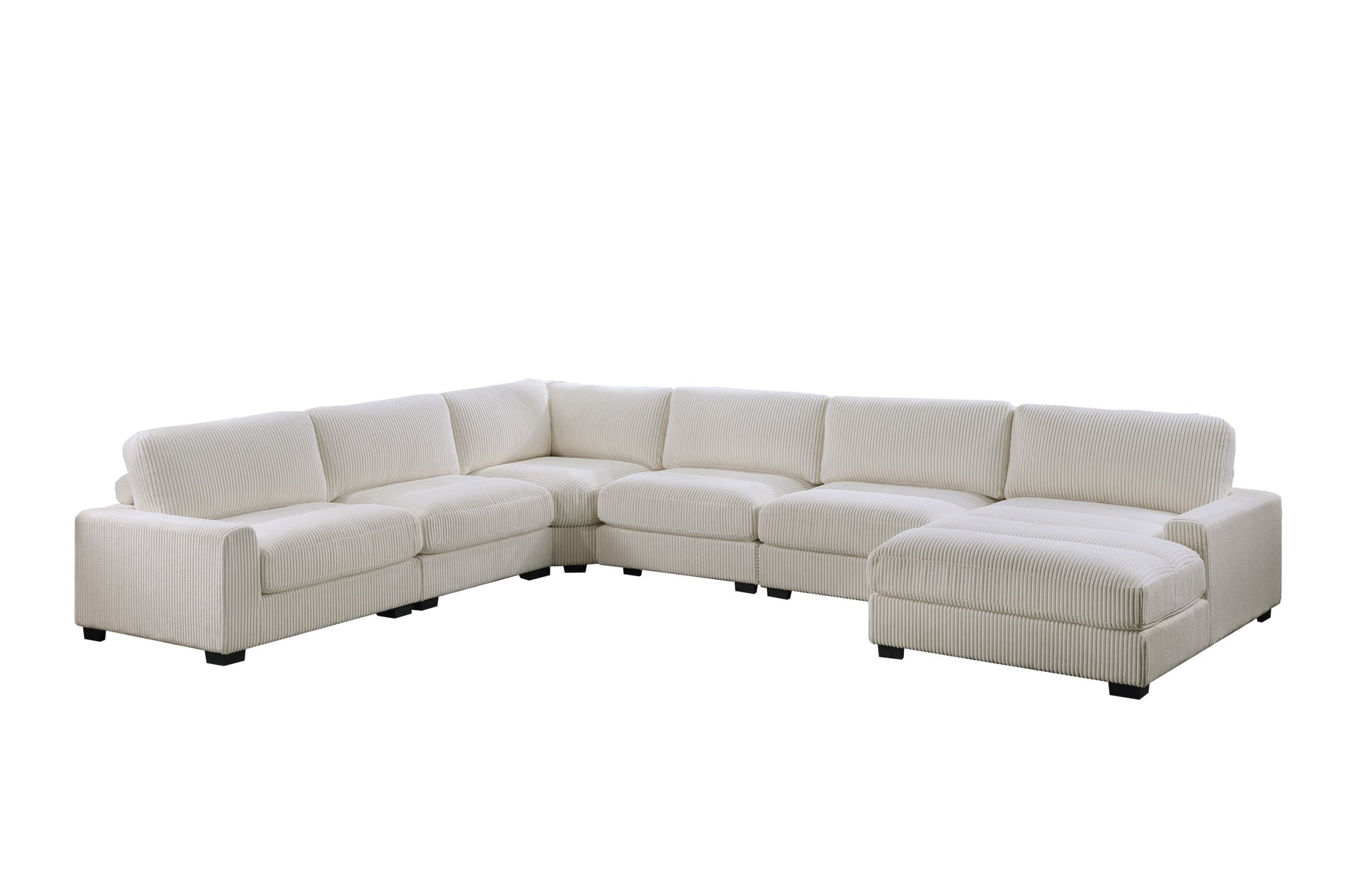 Beige Color 6pc Modular Sectional Set Welt Corduroy Couch LAF Chair, Corner wedge, RAF Chaise, 3x Armless Chairs Living Room Furniture