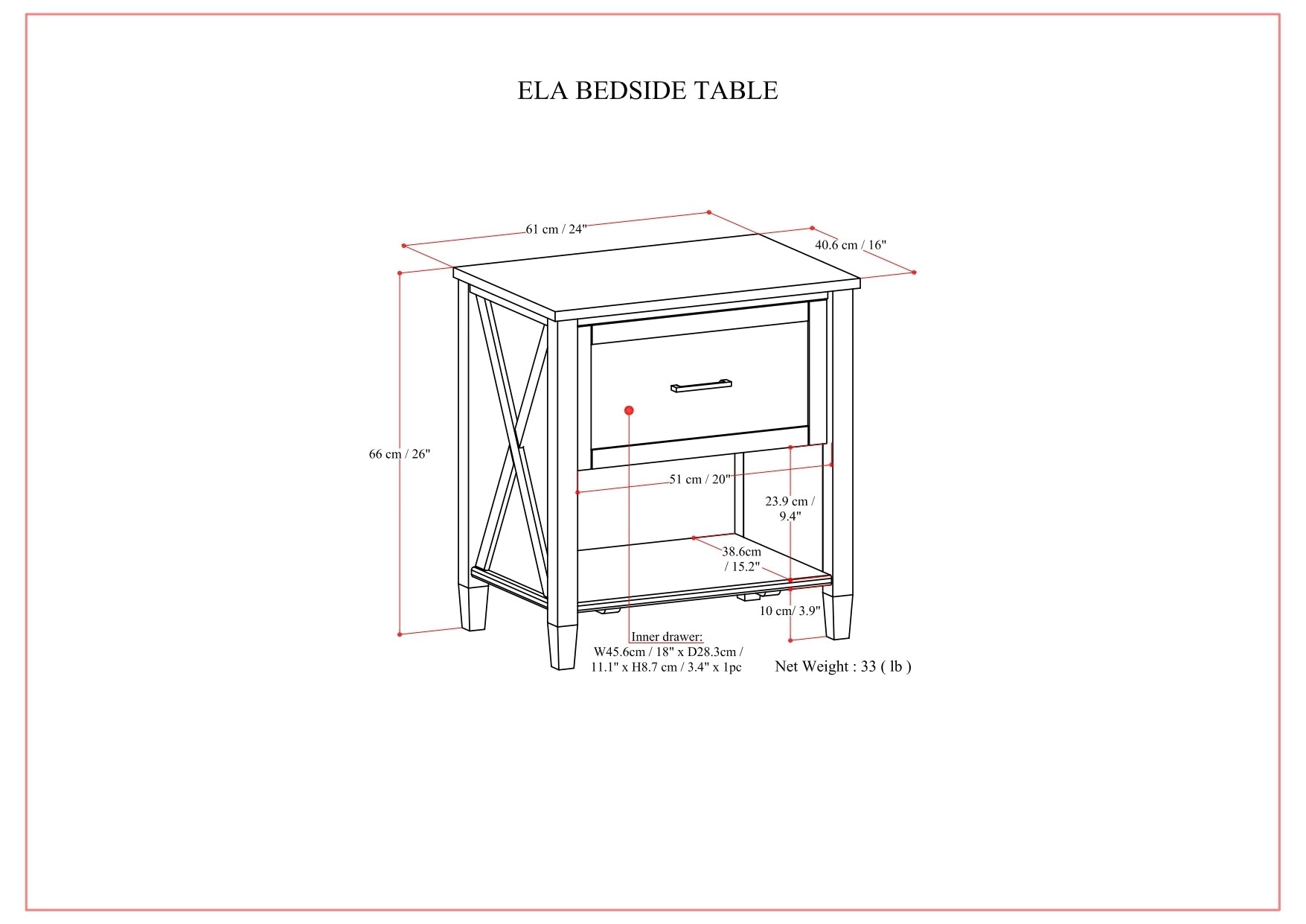 - Features one (1) spacious drawer with metal drawer glides and open bottom storage area