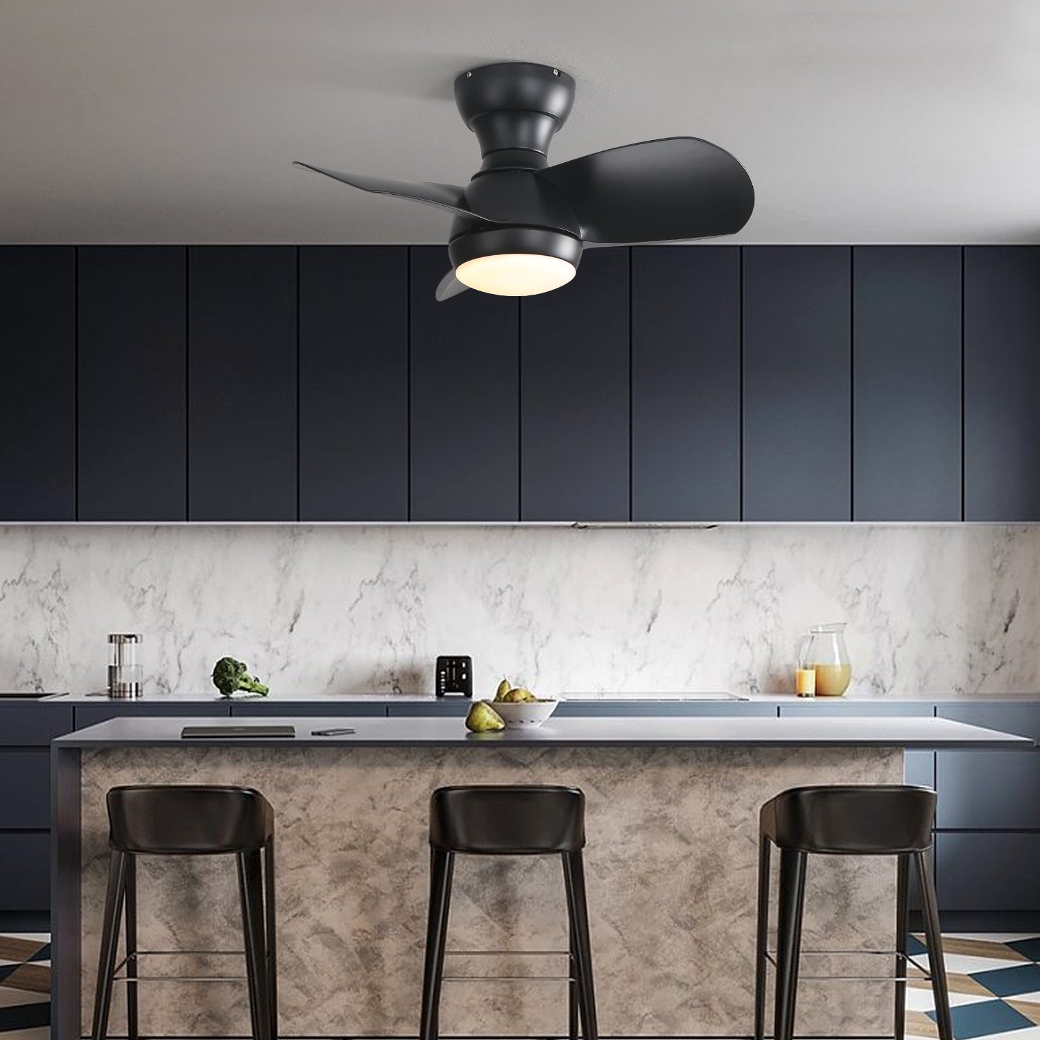 23 Inch Bedroom Ceiling Fan With 3 Color Dimmable 3 ABS Blades Remote Control DC Motor Black With 18W Led Light