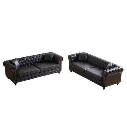 - √ UNIQUE DESIGN: The unique combination of gold-colored metal legs and brass nails on the armrests makes it look high-end. The inlaid button design also brings a few noble qualities to the sofa. This sofa will be a bright and complementary addition to your home or office.
