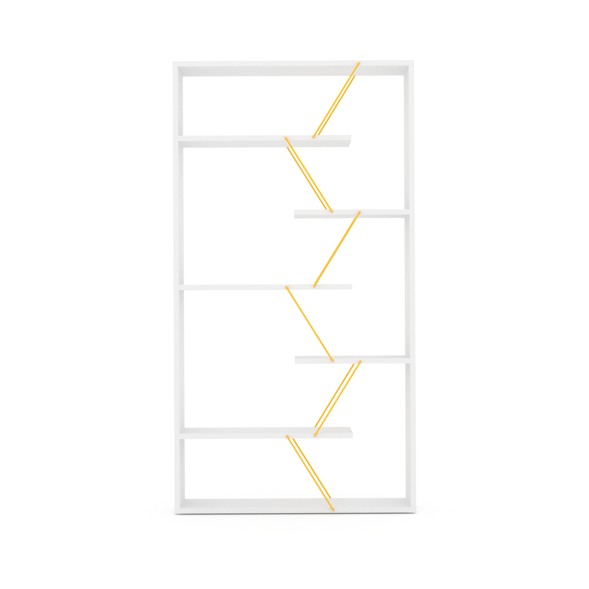 Furnish Home Store Wood Frame Etagere Open Back 6 Shelves Bookcase Industrial Bookshelf for Office and Living Rooms Modern Bookcases Large Bookshelf Organizer, White/Yellow
