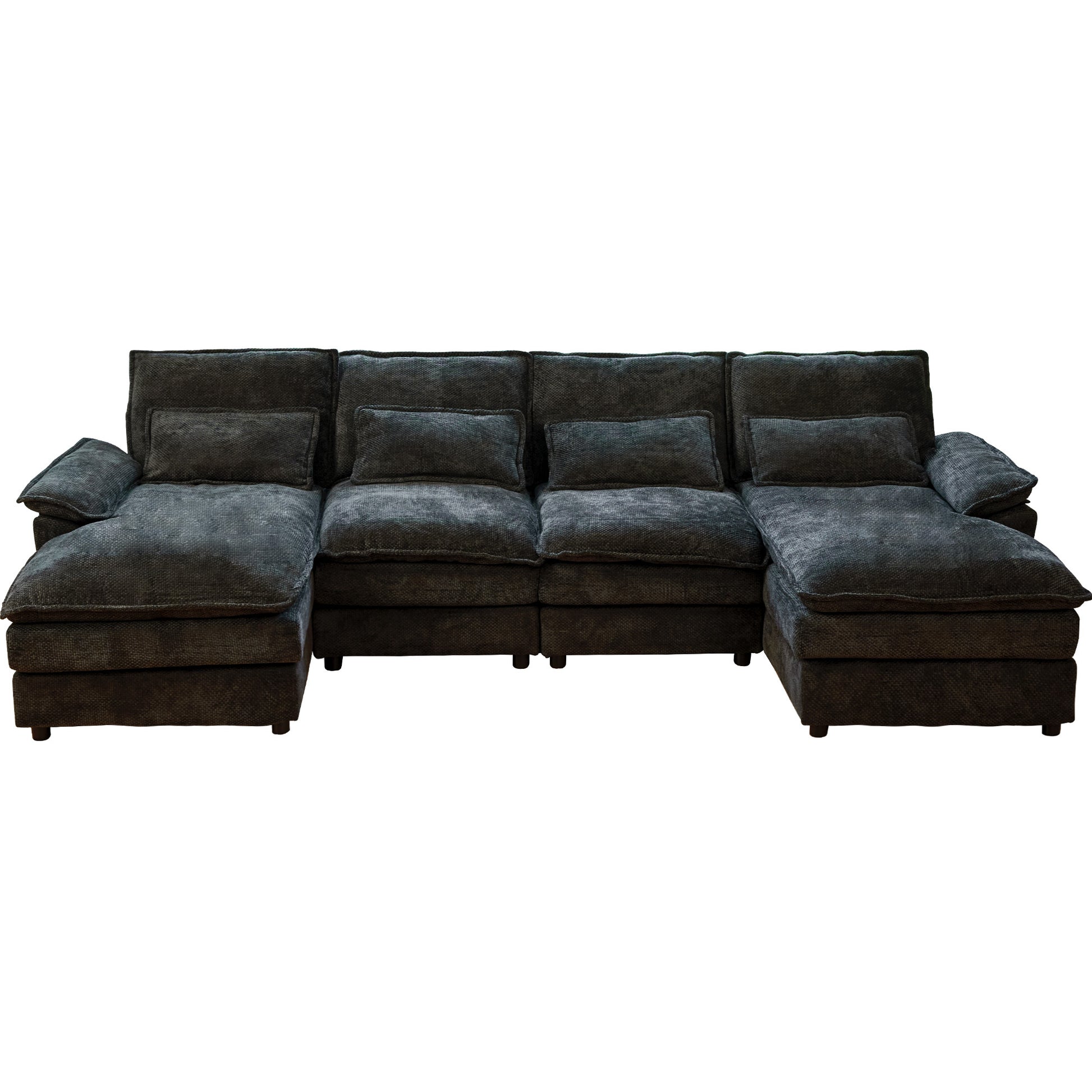 Modular Sectional Sofa Cloud Couch with Double Chaise Lounge, U Shaped Chenille Upholstered Leisure Sofa in Black, Polyester Fabric, 110' Long